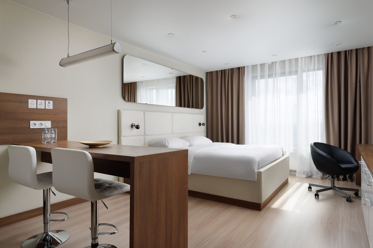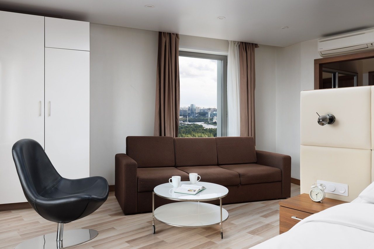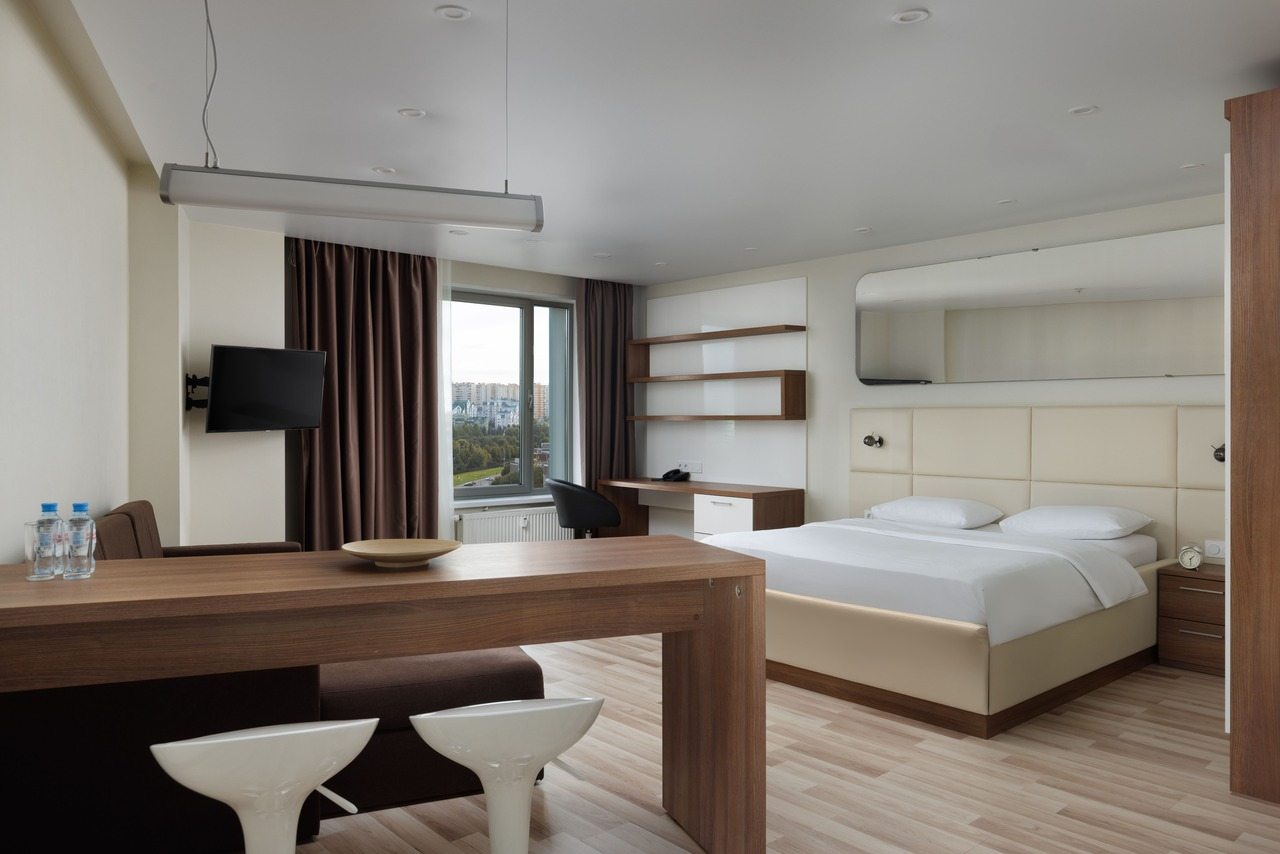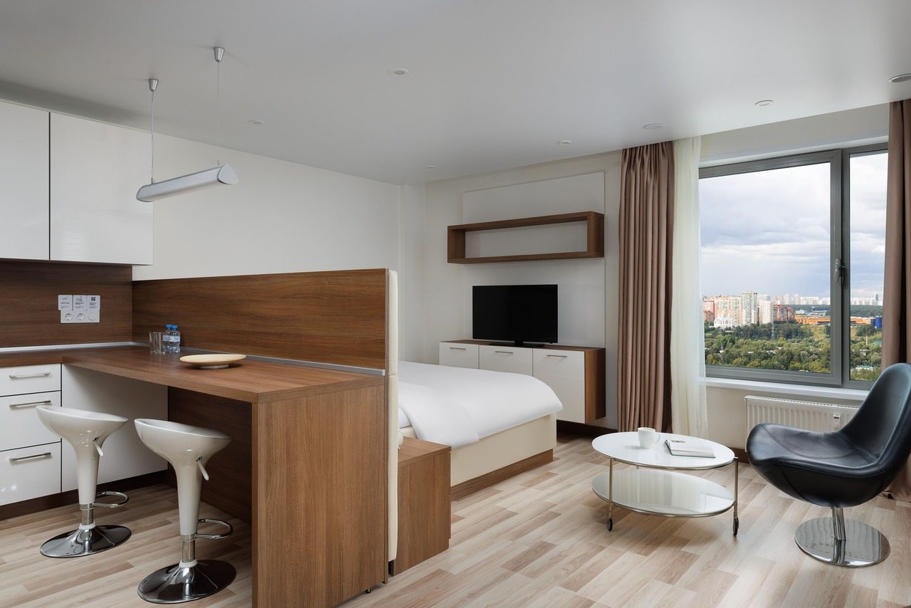 Апарт-отель расположен в спокойном районе Москвы вблизи ландшафтного парка. До ближайшей станции метро «Митино» около 0,9 км.