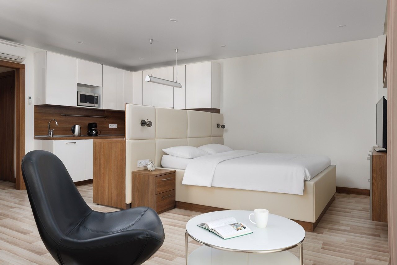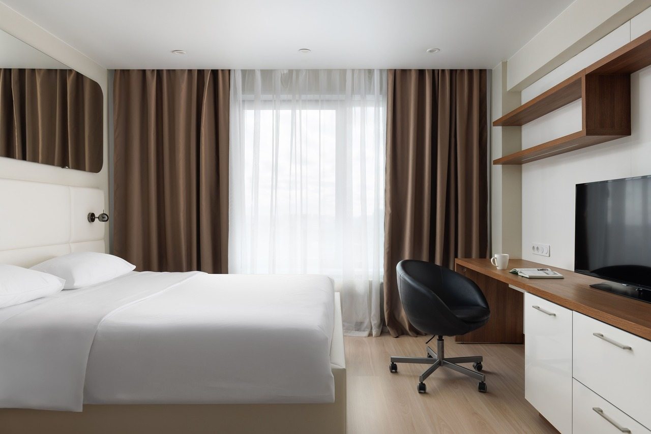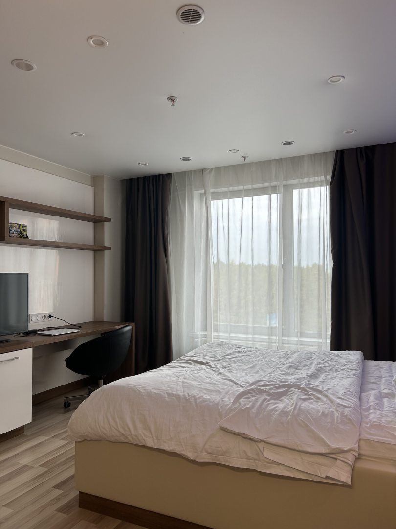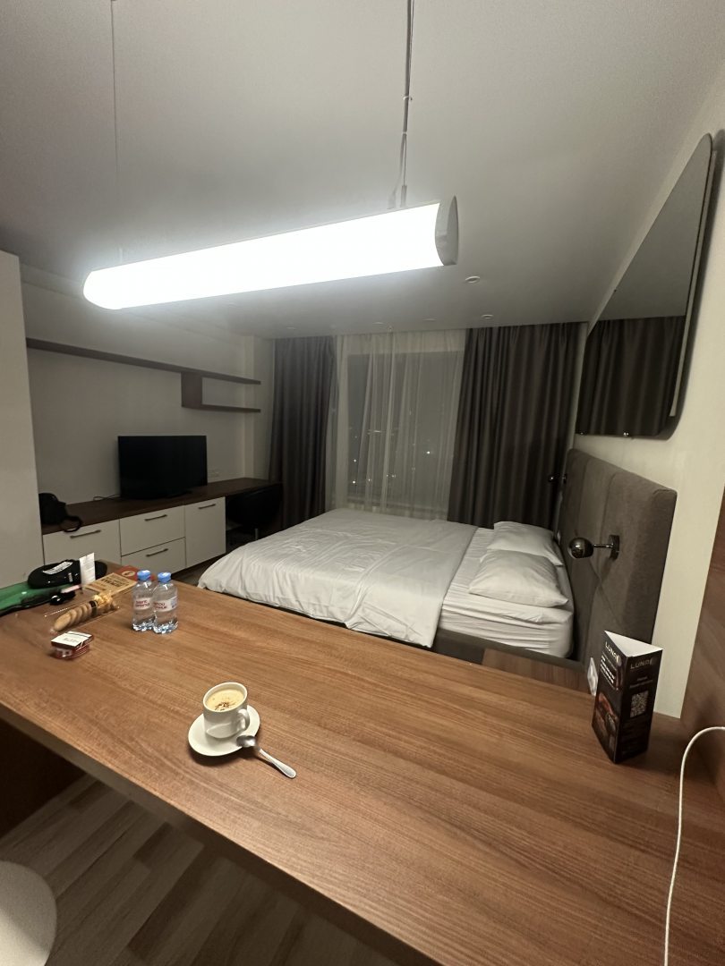 Заселили быстро. Сам номер очень просторный, все чисто, красиво. Ближе к ночи у соседей было шумно, но после звонка на ресепшен все оперативно решилось) Отдельный плюс - наличие ванны. Чай, кофе, вода - все есть в номере. Около отеля есть супермаркеты и кафе. Красивый вид из окна на дорогу и парк