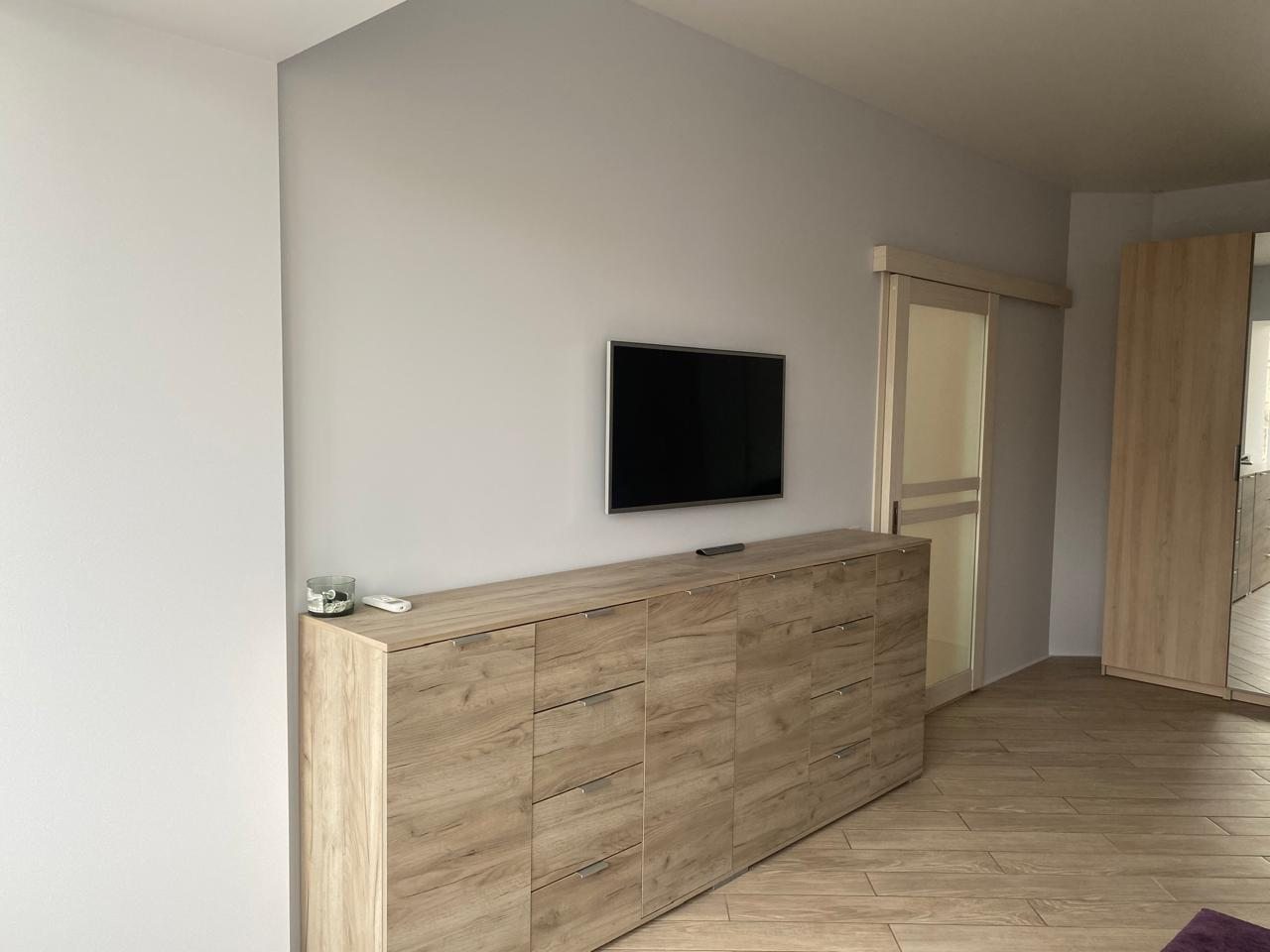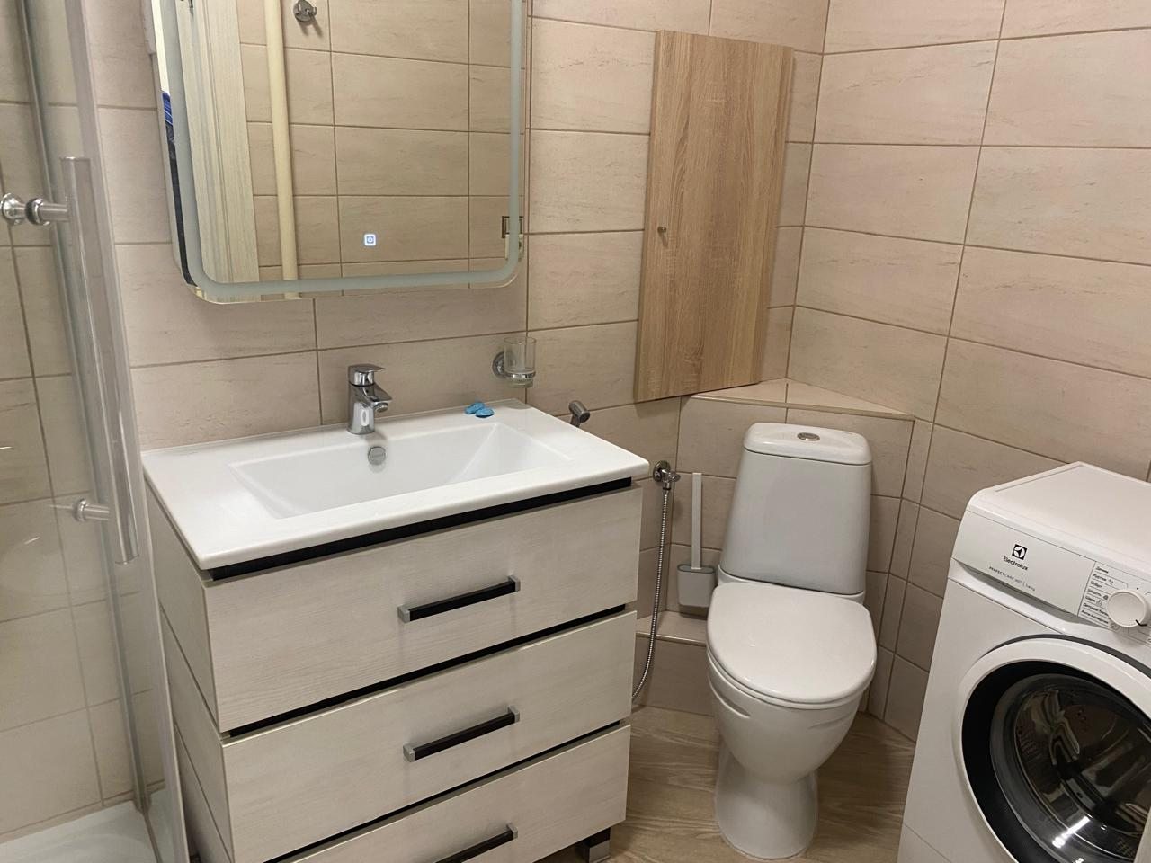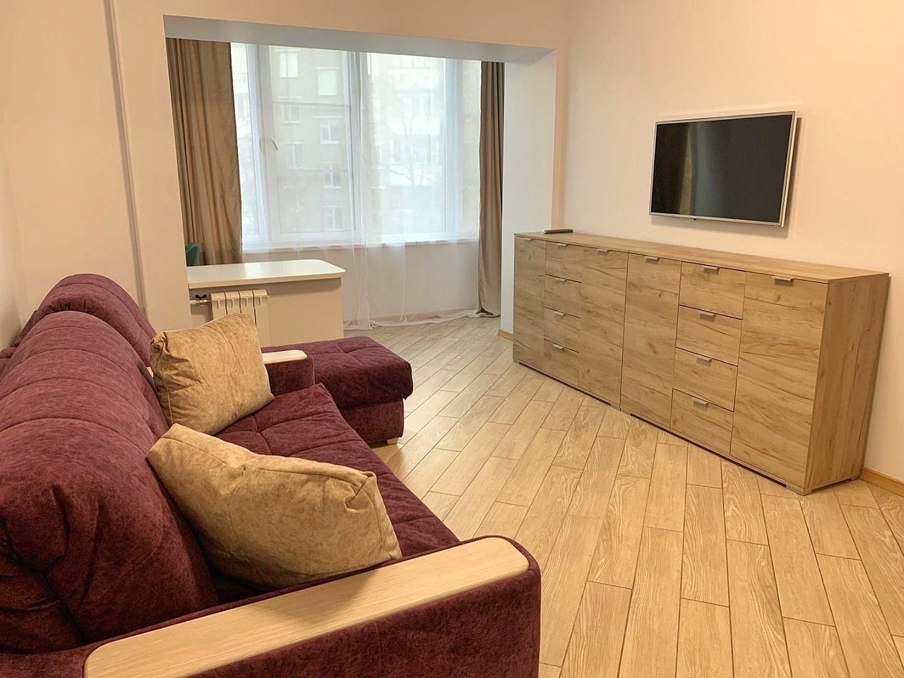 Внутри вас ожидает удобный раскладной диван, телевизор, вместительный шкаф с зеркалом, комод, санузел со стиральной машиной и необходимой сантехникой, просторная лоджия.