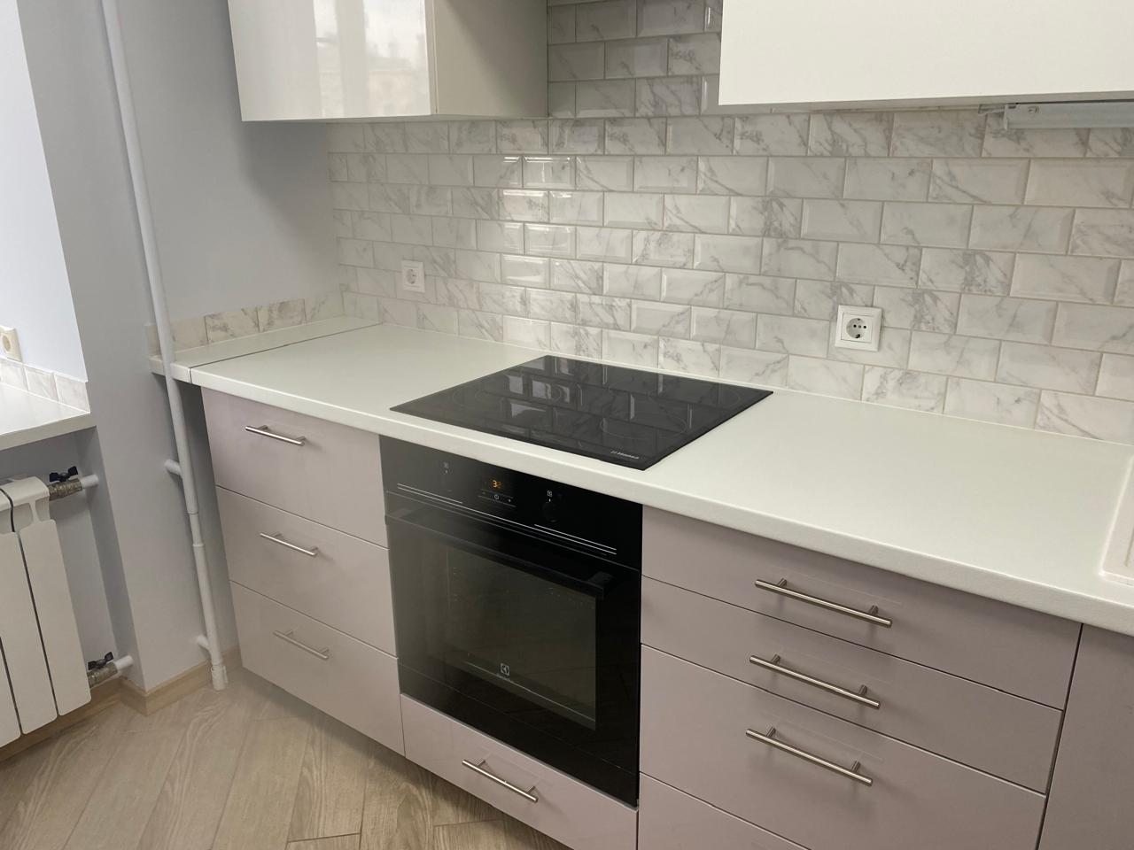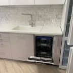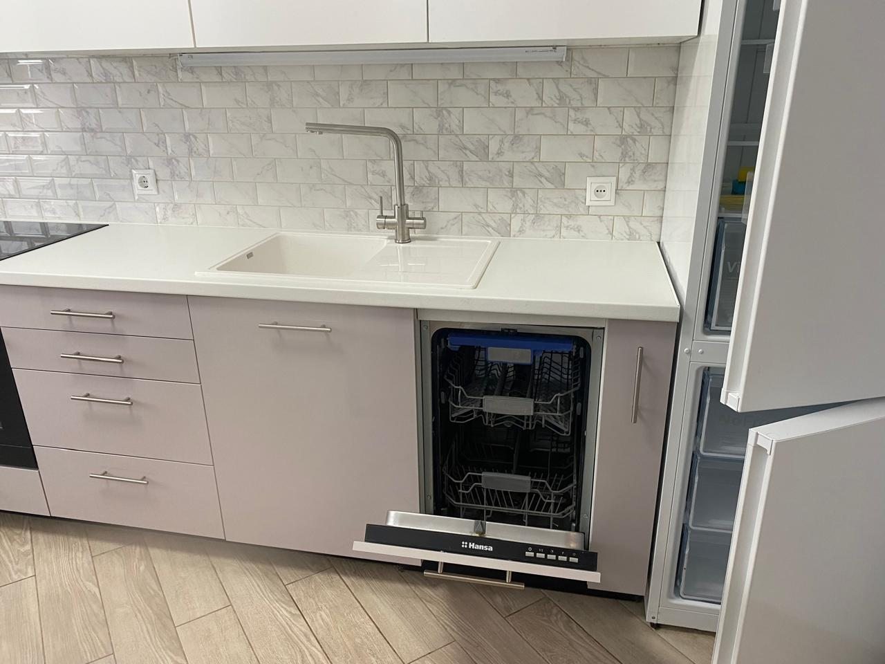 На кухне будет приятно и удобно готовить, так как в наличии духовой шкаф, посудомоечная машина, варочная панель, чайник, СВЧ, обеденная зона.