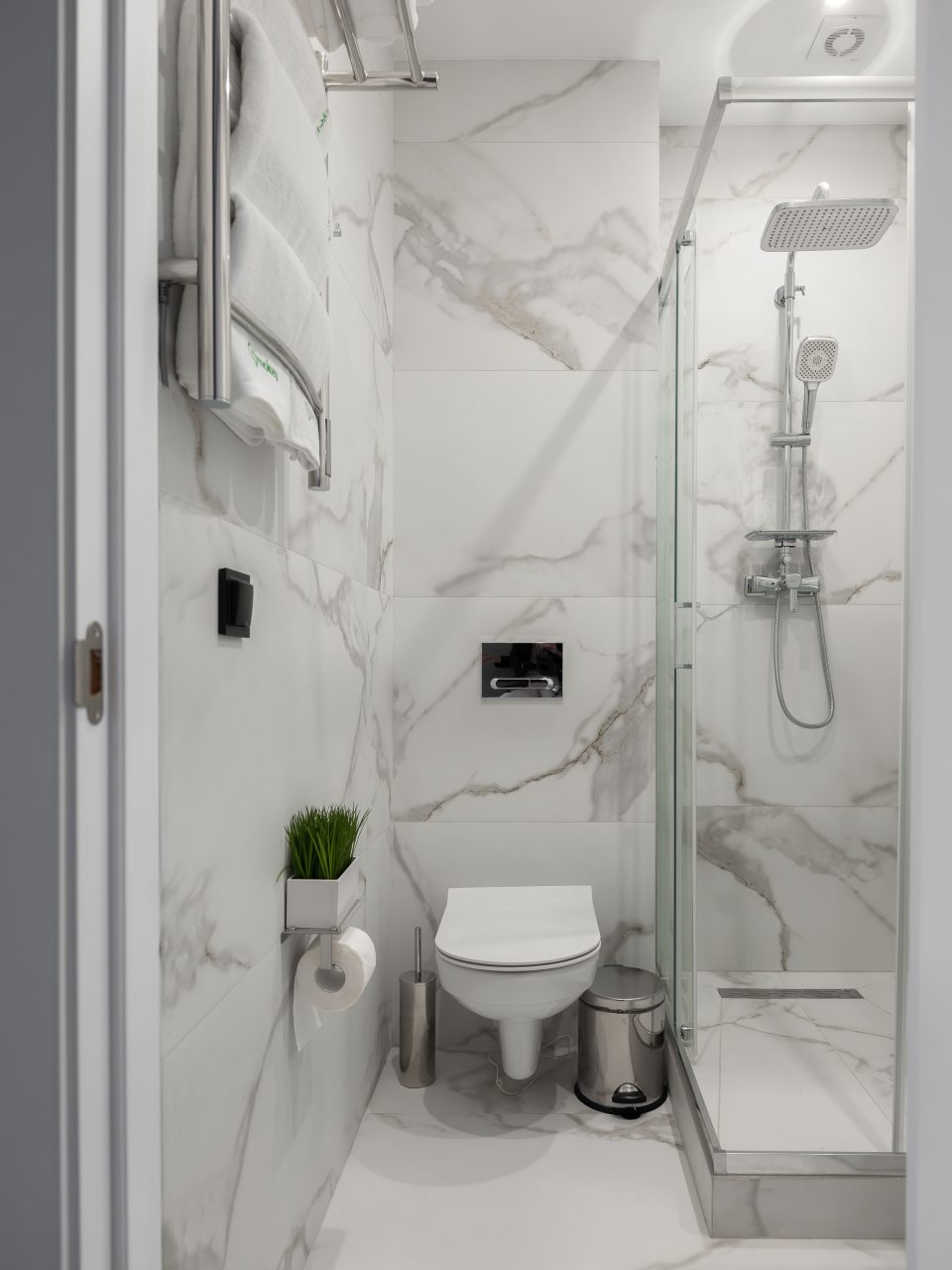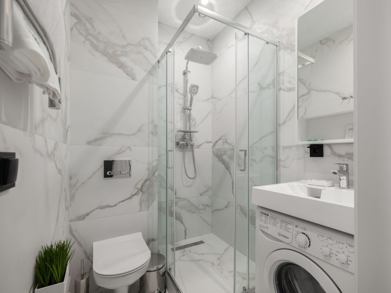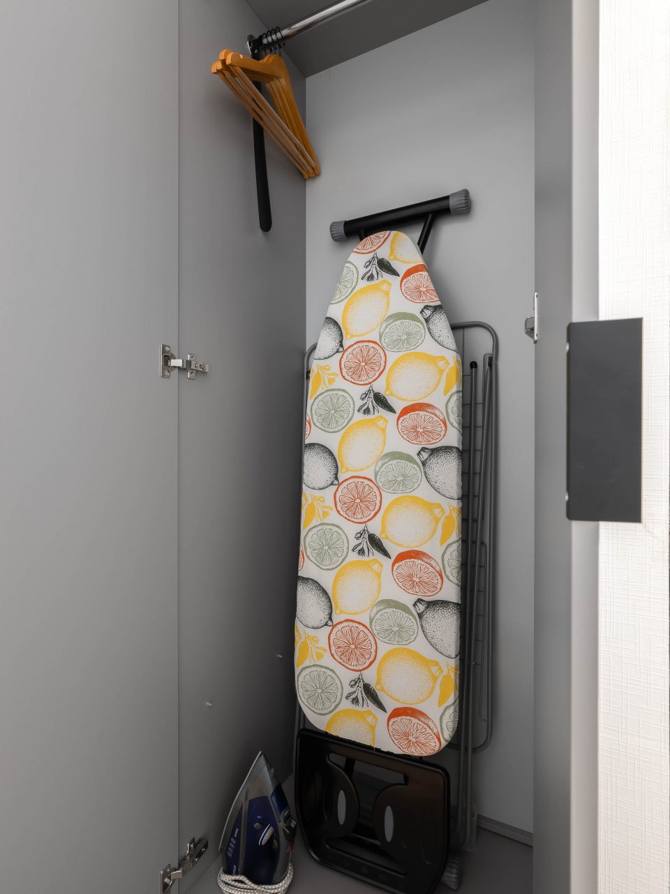 Внутри вы обнаружите большую и удобную двуспальную кровать, панорамные окна, различные сценарии освещения, телевизор, плотные шторы, кондиционер, шкаф, гладильные принадлежности, а также санузел с феном и стиральной машиной.