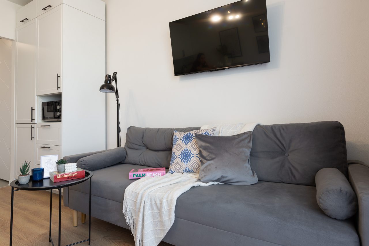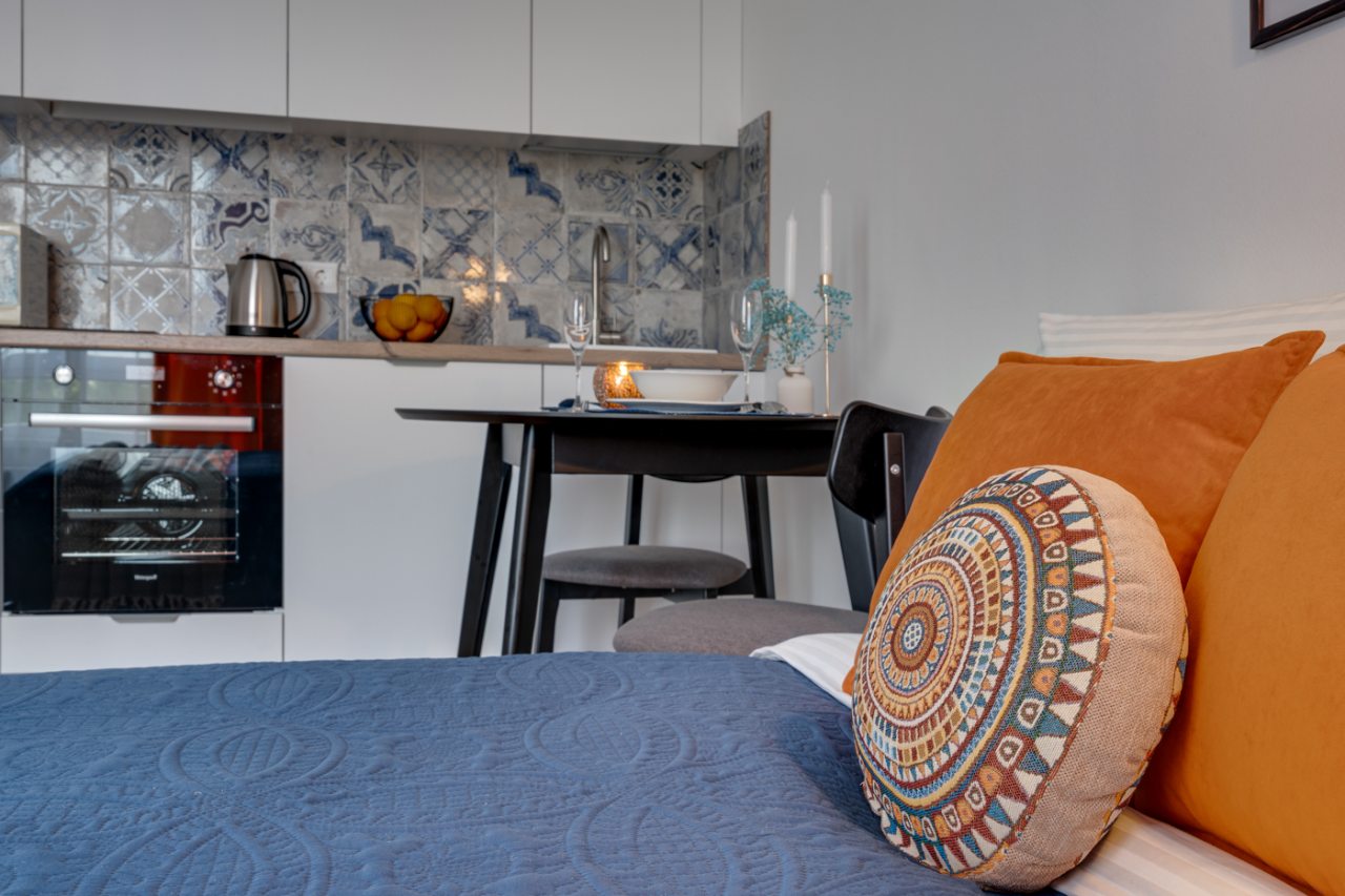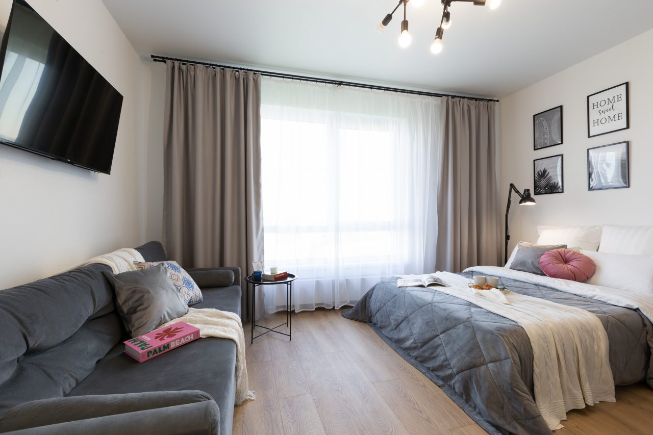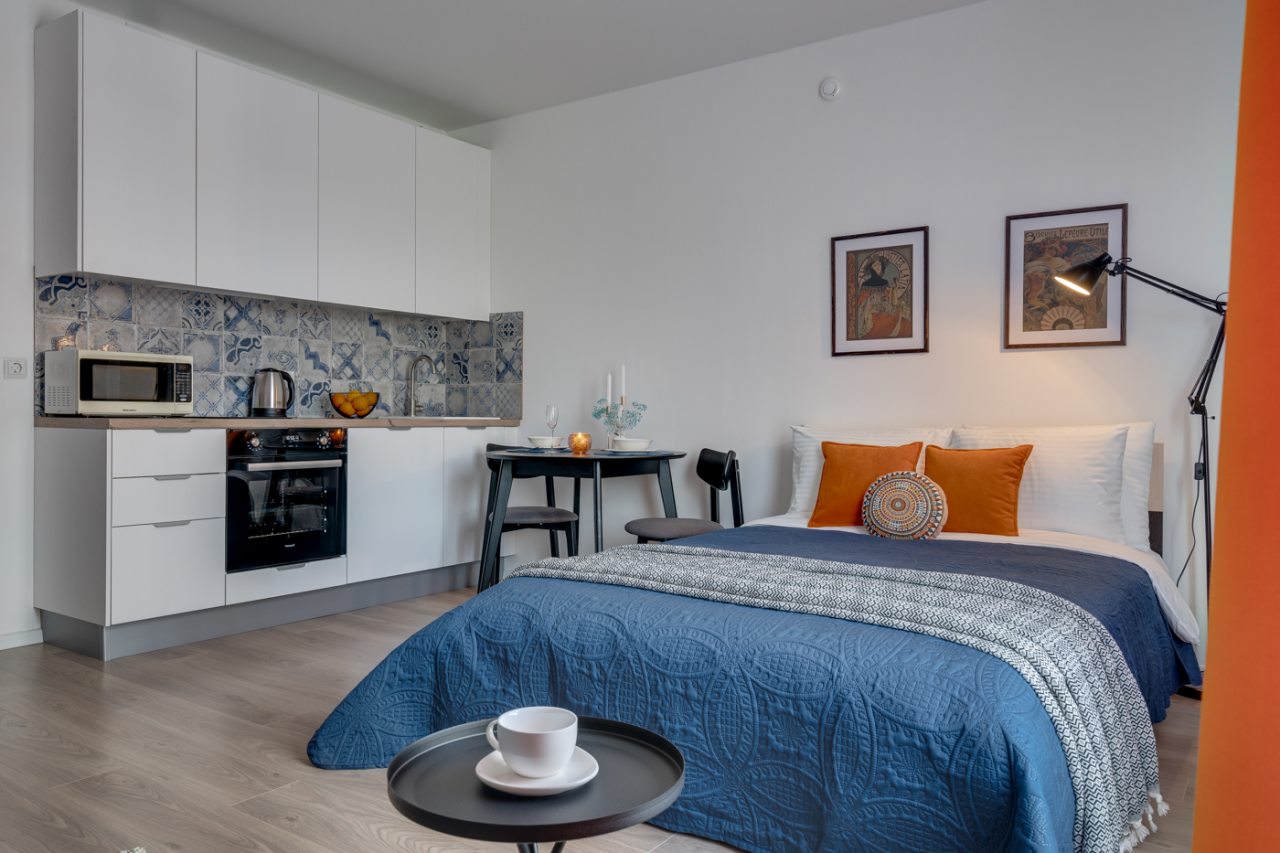 Апартаменты понравились своей чистотой, приятным интерьером, расположением и наличием современных удобств. Внутри очень комфортно, не похоже на квартиру для аренды, настолько здесь уютно и все продумано для гостей. Запомнился декор. Рядом есть парк, где можно погулять и остановки общественного транспорта.