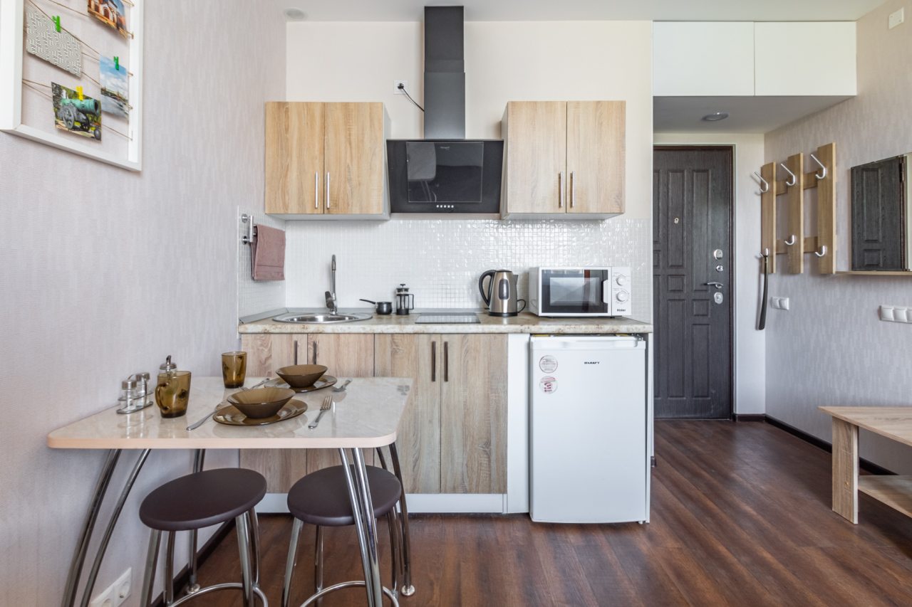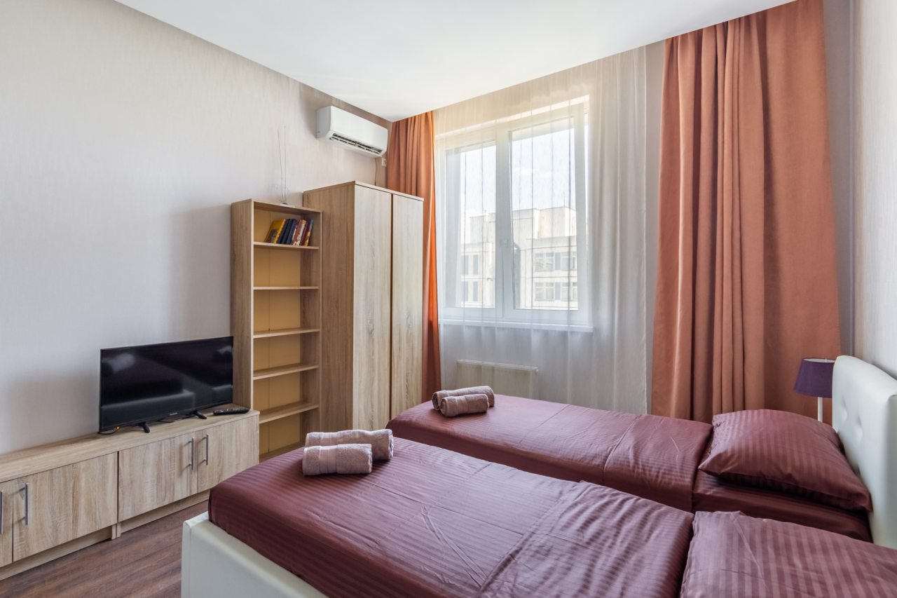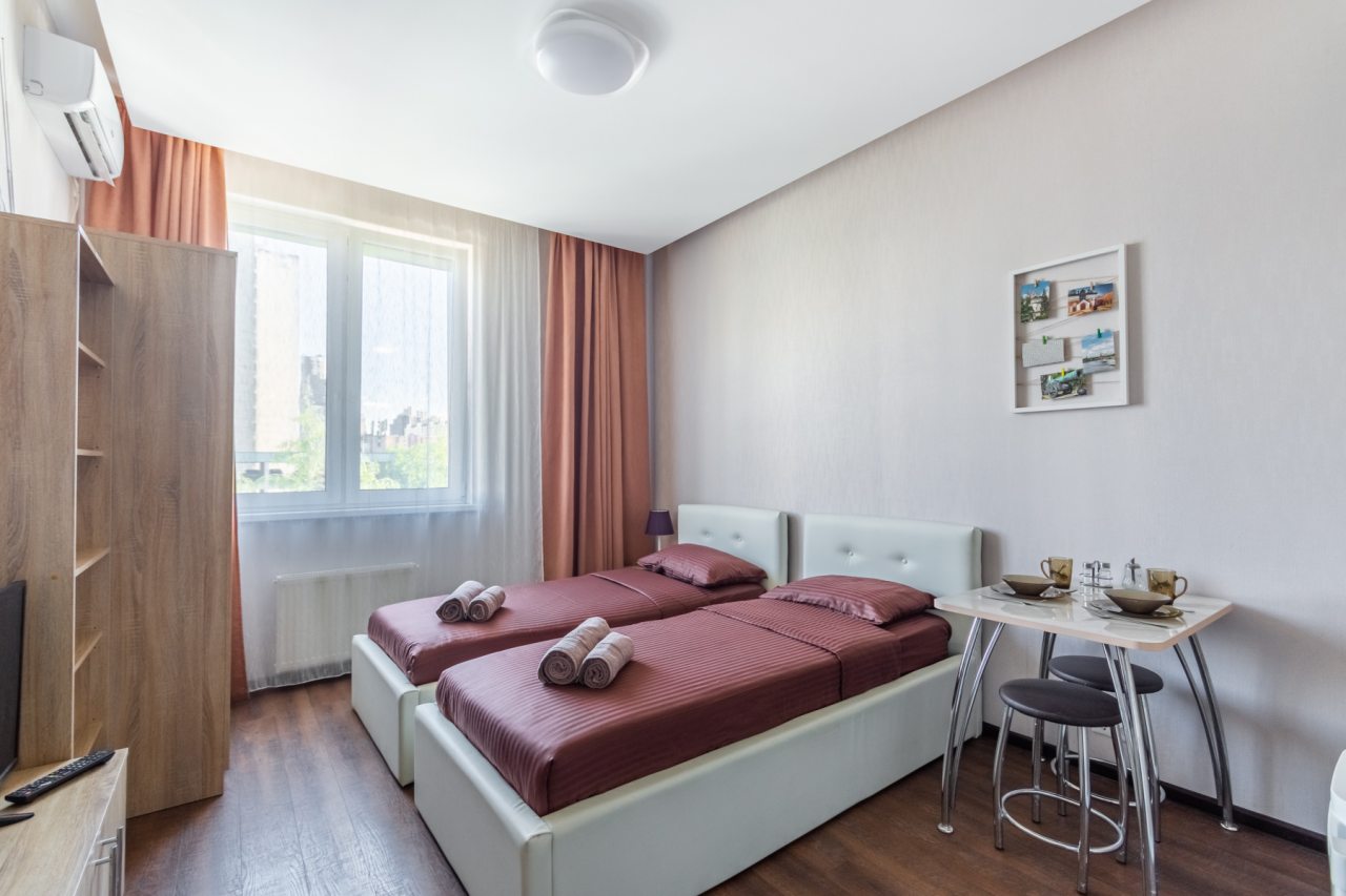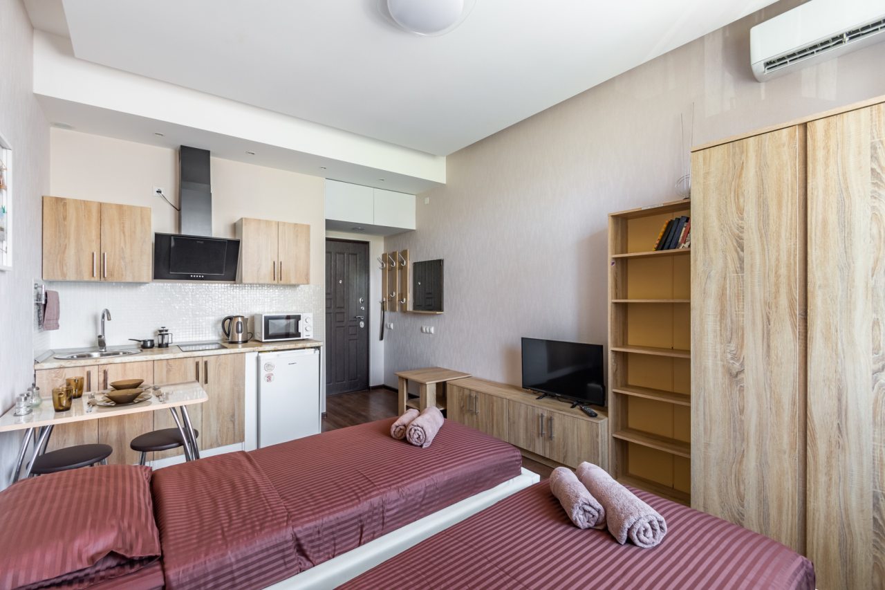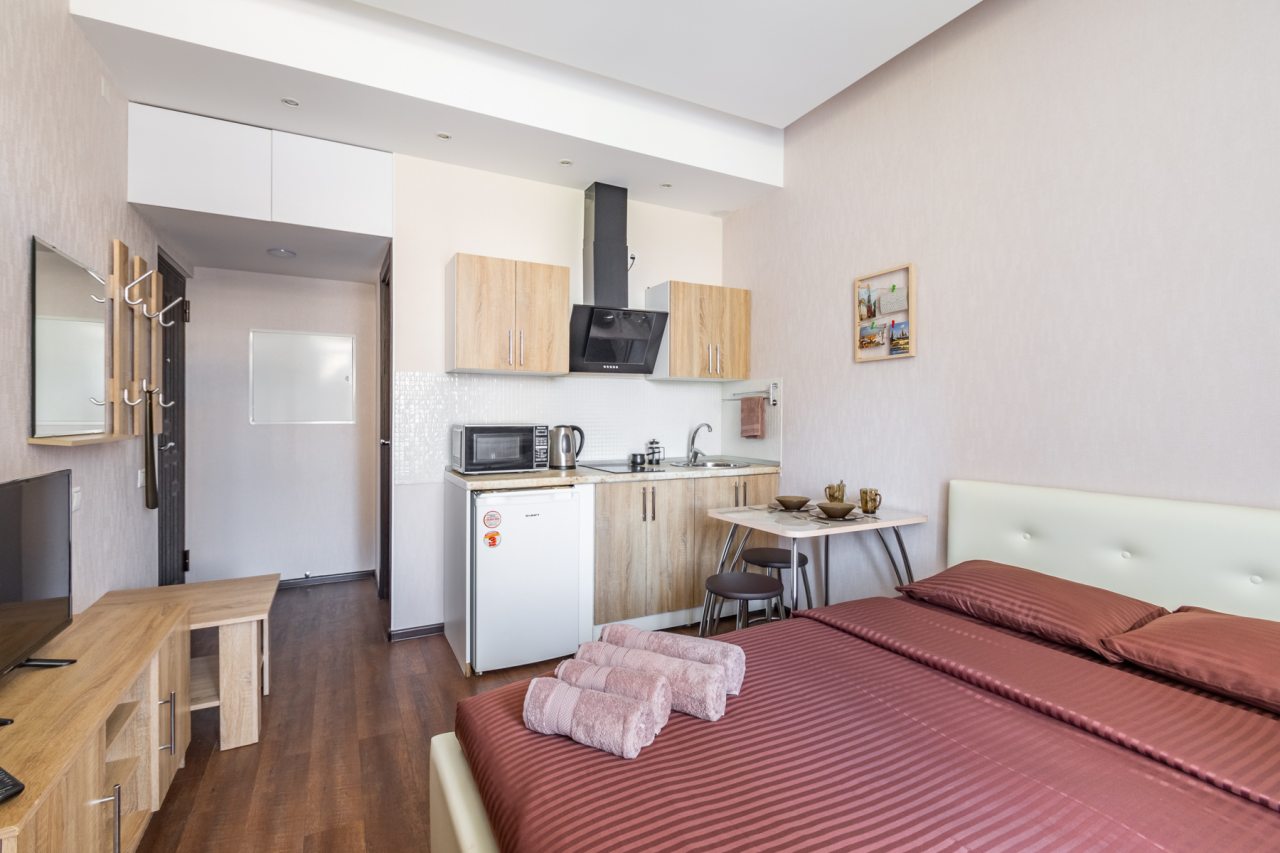 Для комфортного проживания и отдыха в апартаментах есть современная техника, мебель, удобные кровати, интернет. Ванная комната оснащена всеми необходимыми принадлежностями.