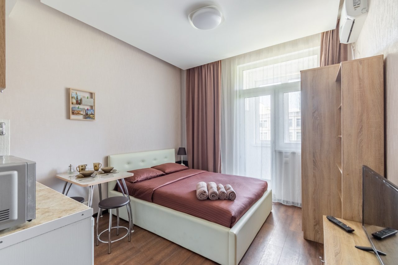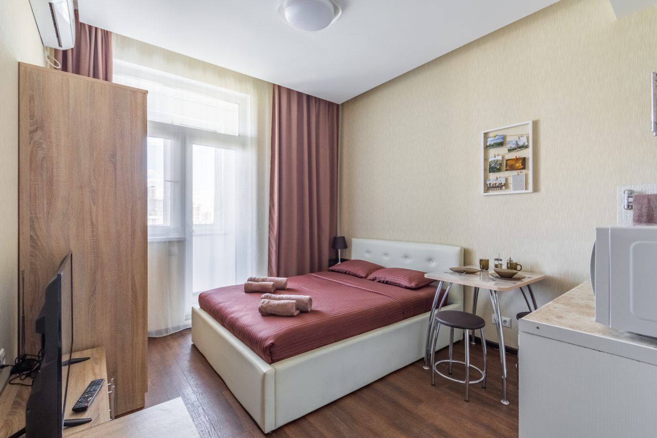 Комфортные апартаменты с двуспальной кроватью и всем нужным для короткого проживания. В кухне было наличие не только посуды, но и чая, кофе, сахара. Санузел чистый, душ хороший. Порадовала стиральная машина. Вид с 12-го этажа добавляет баллов. До метро Беломорская рукой подать.