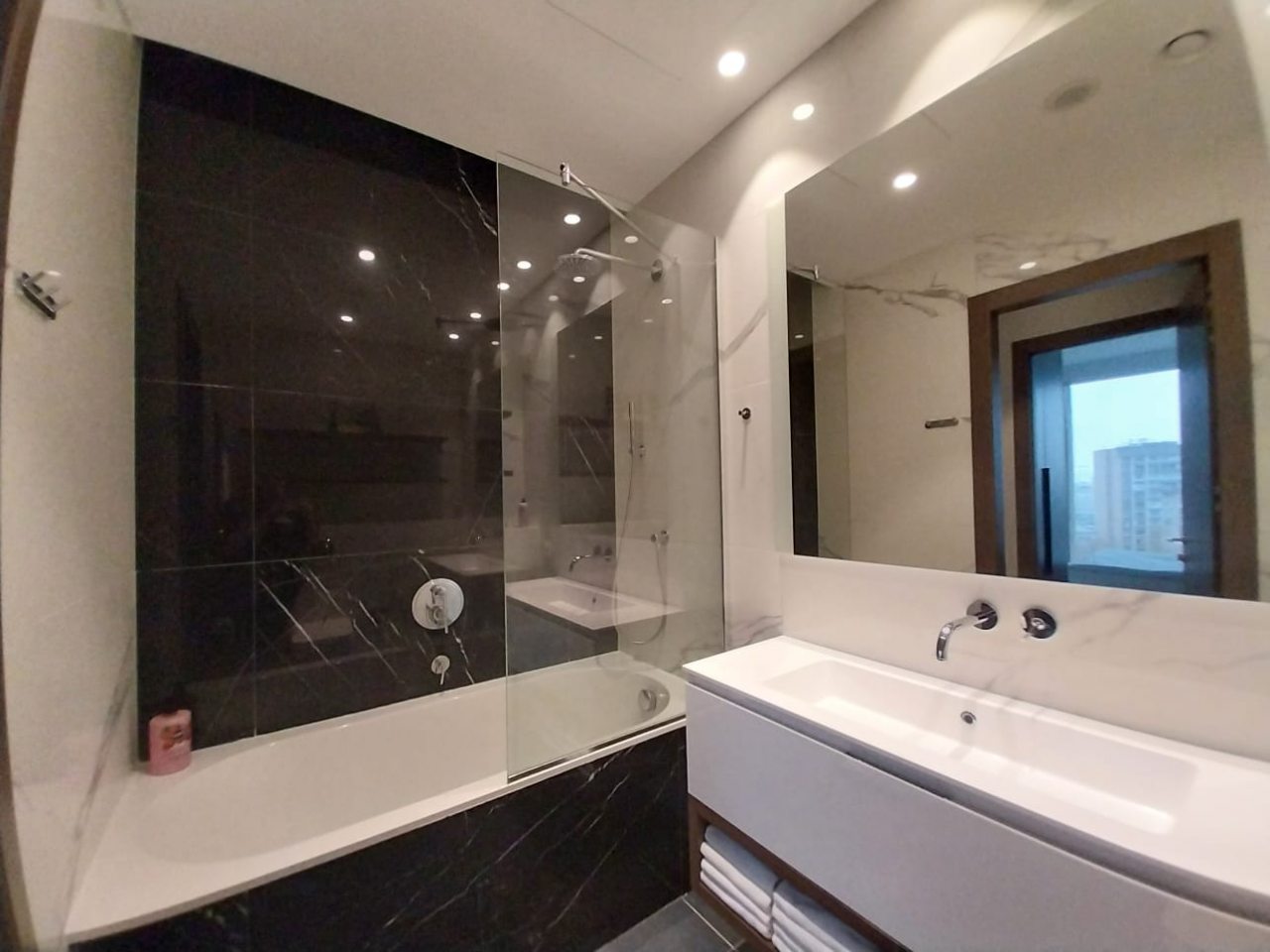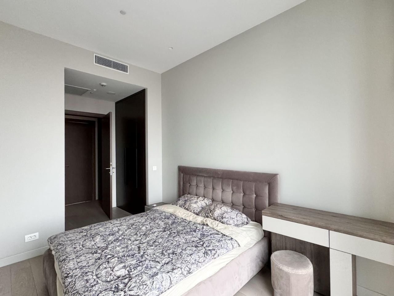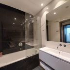 Внутри вас ожидает панорамный вид на город, двуспальная кровать с мягким изголовьем, ЖК-телевизоры, удобный диван, вместительный шкаф, а также полноценная ванна.