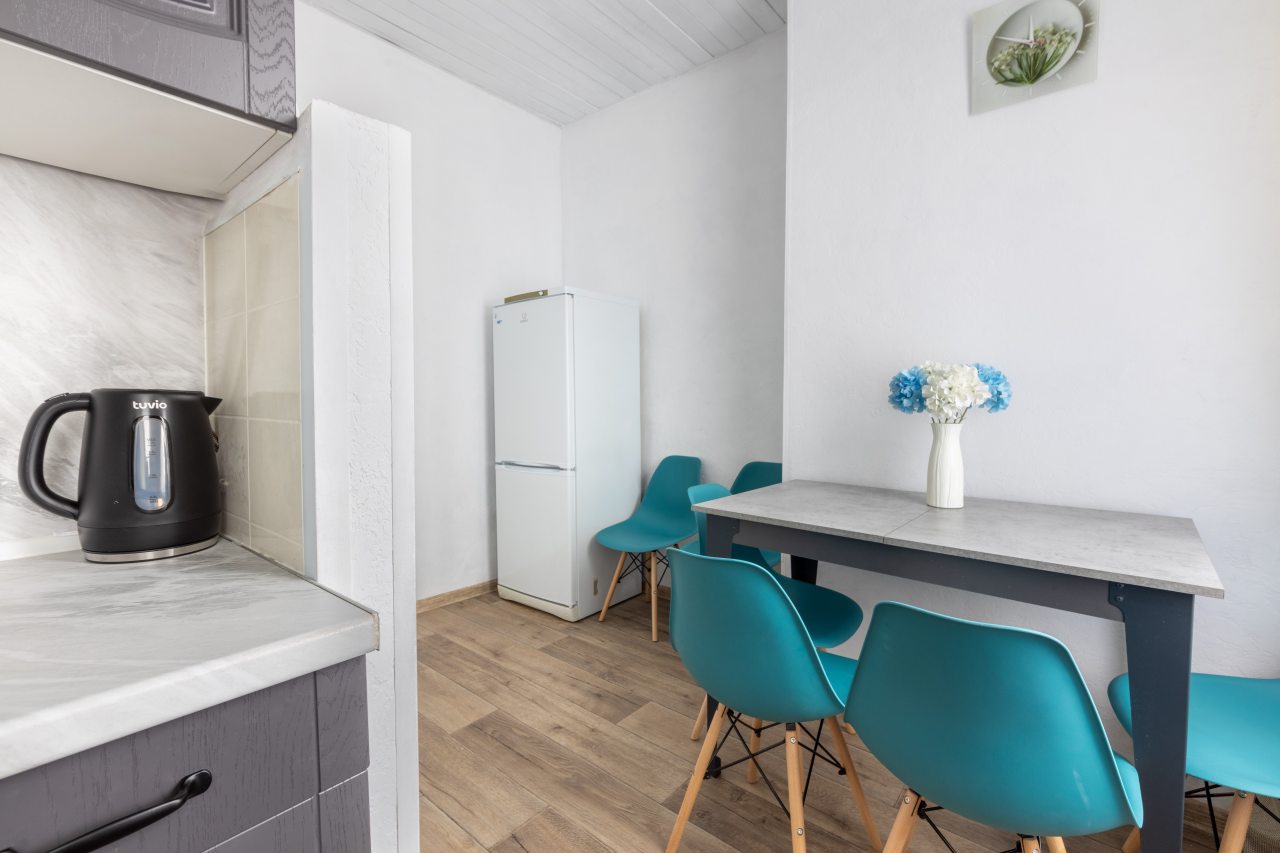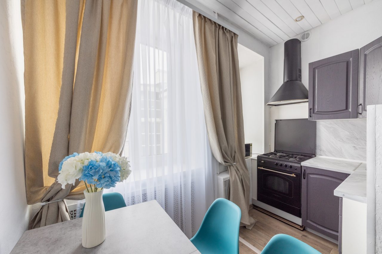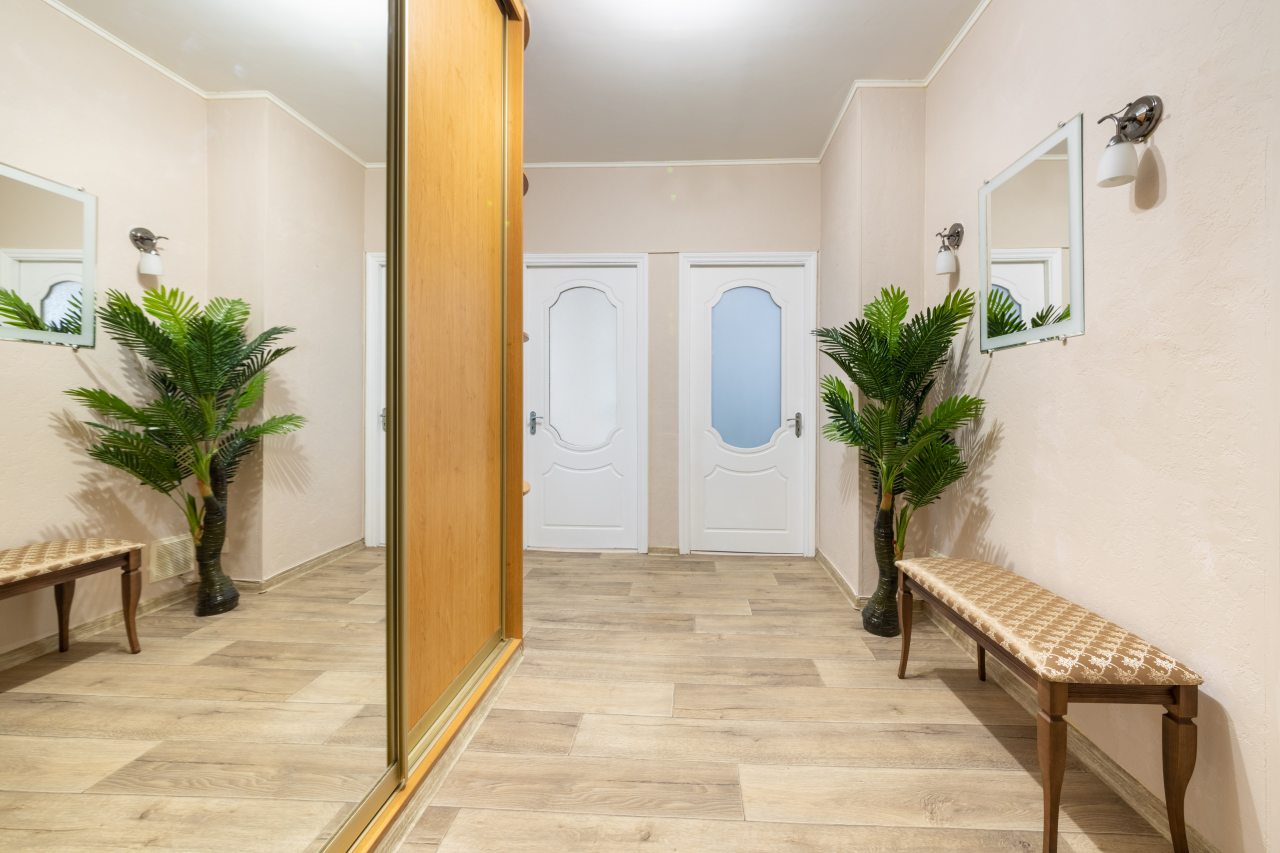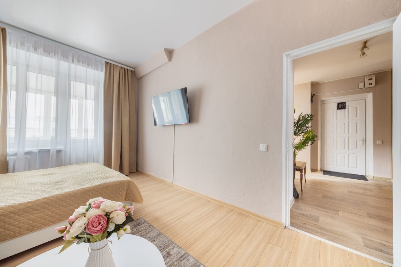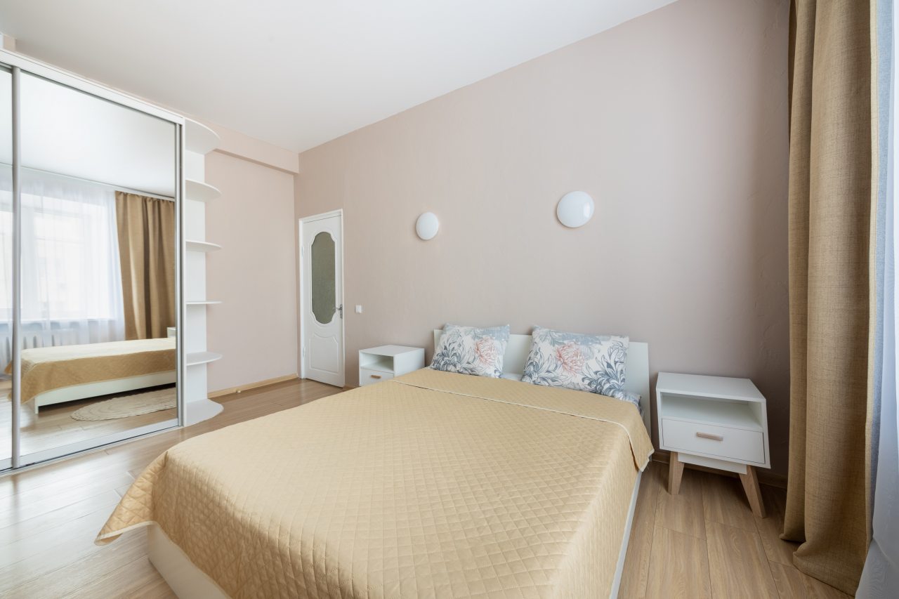 В апартаментах провели чуть больше недели. Квартира понравилась, очень просторная, светлая без посторонних запахов. На окнах плотные шторы, благодаря которым по утрам удавалось выспаться. Интерьер спокойный, много шкафов в потолок, они вместительные, даже чемодан поставили в один из них. На кухне есть техника в рабочем состоянии, многофункциональная. Цена для столицы приемлемая.