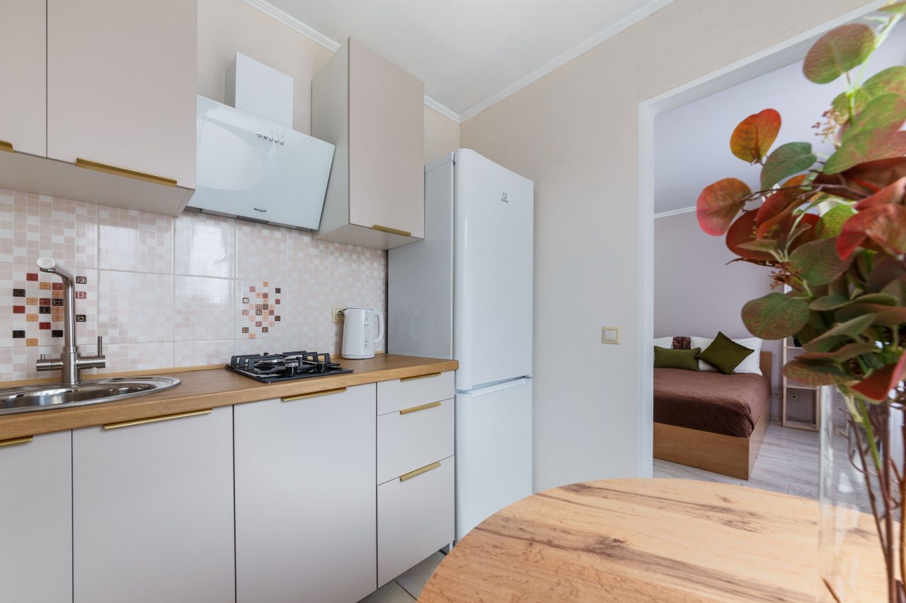 Апартаменты укомплектованы необходимой мебелью и техникой. В ванной комнате имеется стиральная машина и фен. В числе удобств бесплатный wi-fi.