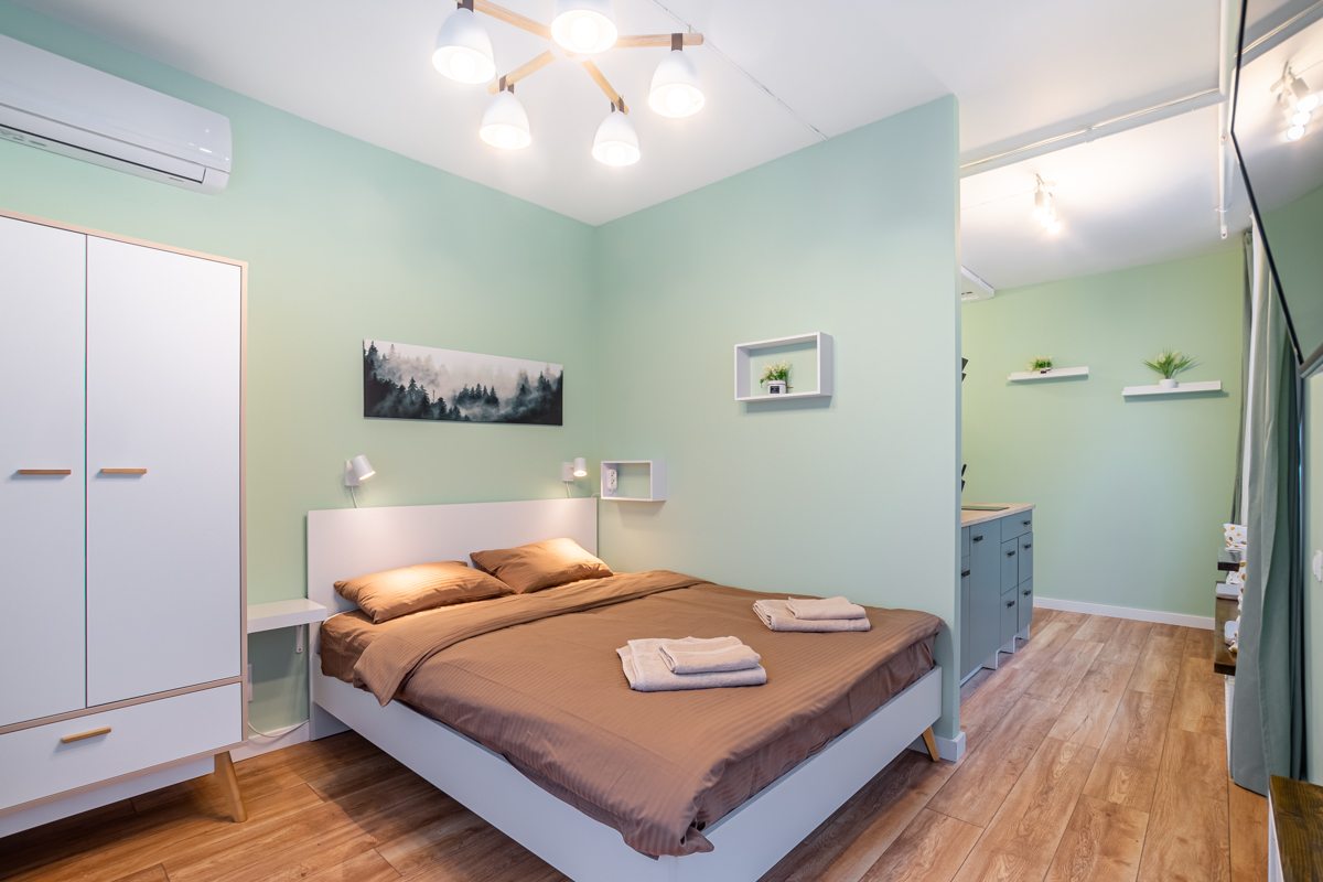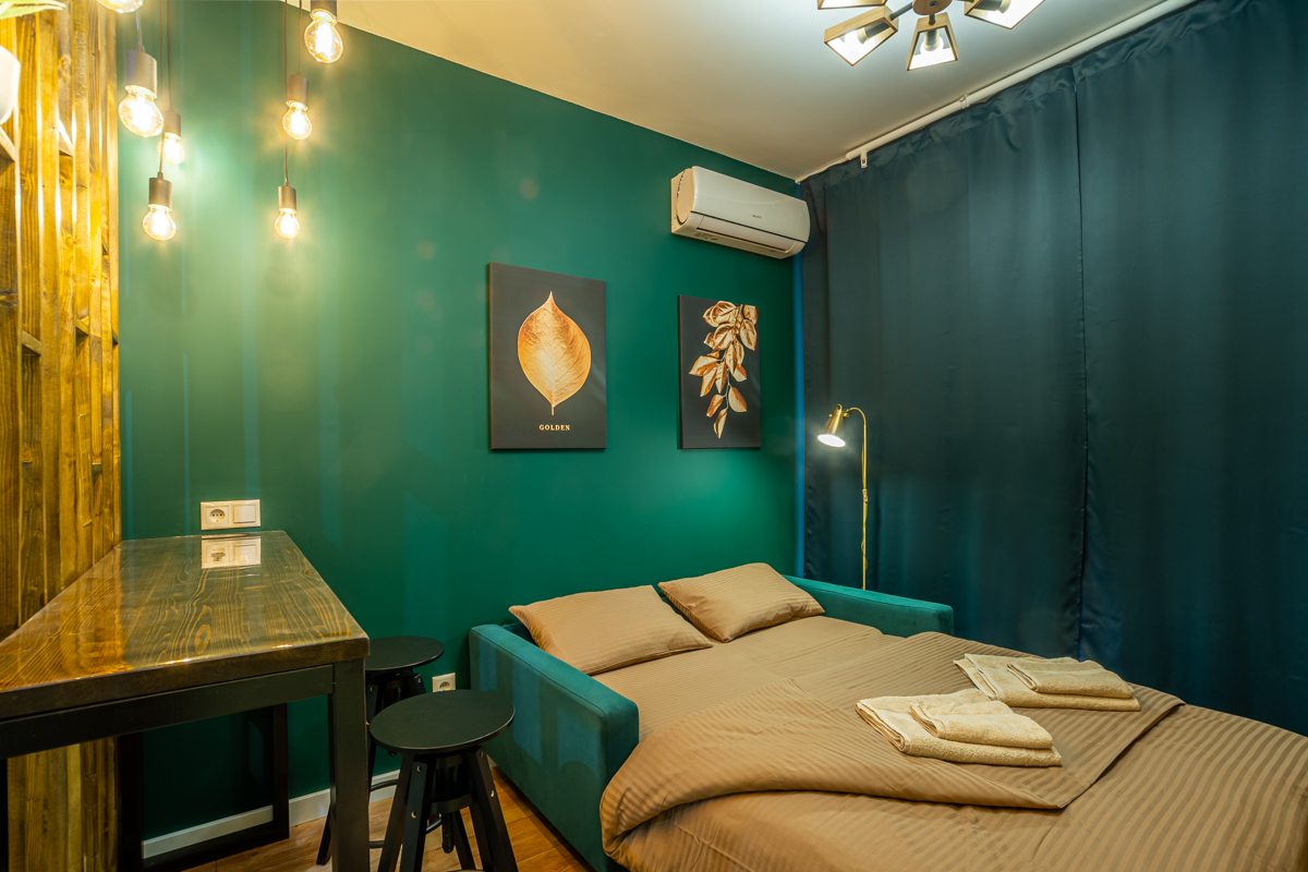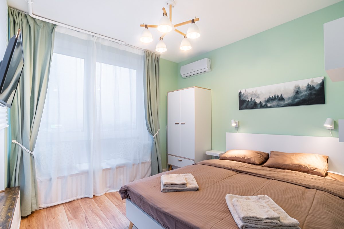 Хороший вариант для гостей столицы, ведь рядом есть и остановки, и интересные места, и магазины. Плюс в квартире отлично обустроены условия, есть удобнейшая кровать, тишина, чистота. Ну что еще нужно, чтобы отдыхать после насыщенных прогулок по красавице-столице.
