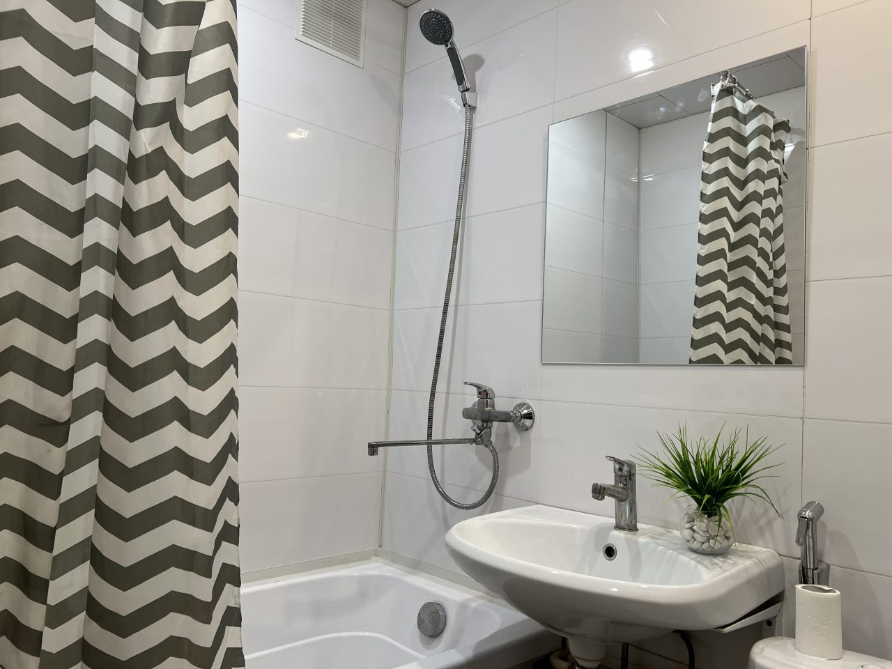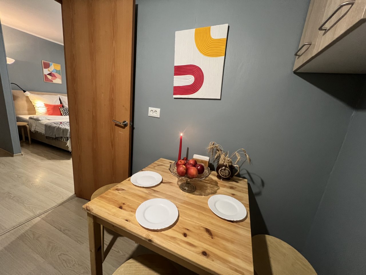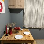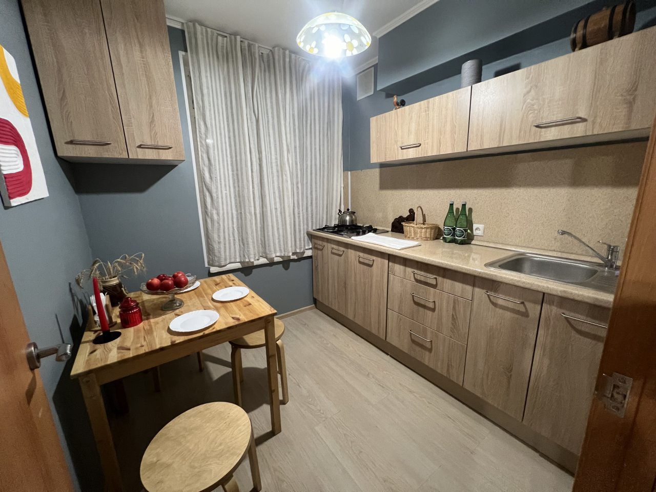 Кухня укомплектована стильным гарнитуром, обеденным столом и необходимой бытовой техникой. В шаговой доступности огромный выбор кафе и других заведений, где можно вкусно поесть.