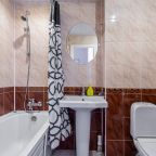 К размещению подготовлены апартаменты, оформленные в классическом стиле, с удобной мебелью и техникой: двуспальная кровать, диван, телевизор, письменный стол, шкаф-купе. При необходимости можно воспользоваться гладильными принадлежностями. В ванной комнате представлены индивидуальные средства гигиены.