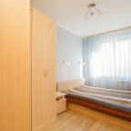 Для размещения подготовлены апартаменты, оформленные в современном стиле. Они укомплектованы мебелью и техникой для комфортного пребывания: двуспальная кровать, прикроватные тумбочки, вместительный шкаф, мягкий диван, телевизор. Ванная комната укомплектована необходимым набором сантехники и стирольной машинкой.