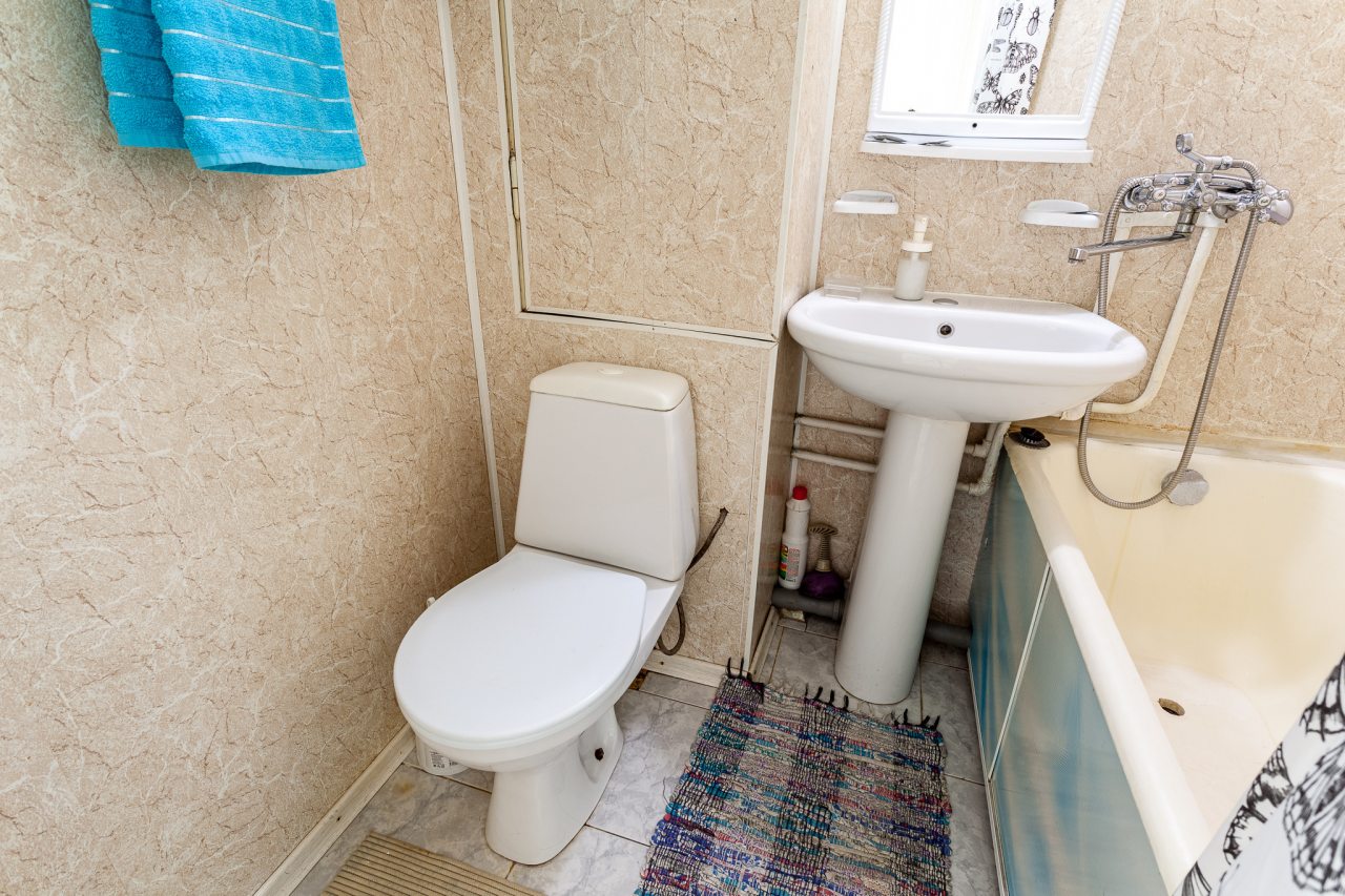 Внутри есть всё необходимое для отдыха и проживания, включая кровать с удобным матрасом, диван, телевизор, различные шкафы, комод, полноценную ванну и набор полотенец.