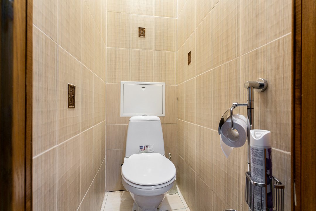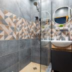 Внутри продумано всё для комфорта гостей, включая двуспальную кровать, телевизор с удобным креслом, вместительный шкаф с зеркалом в полный рост, стиральную машину, а также раздельный санузел с душем.