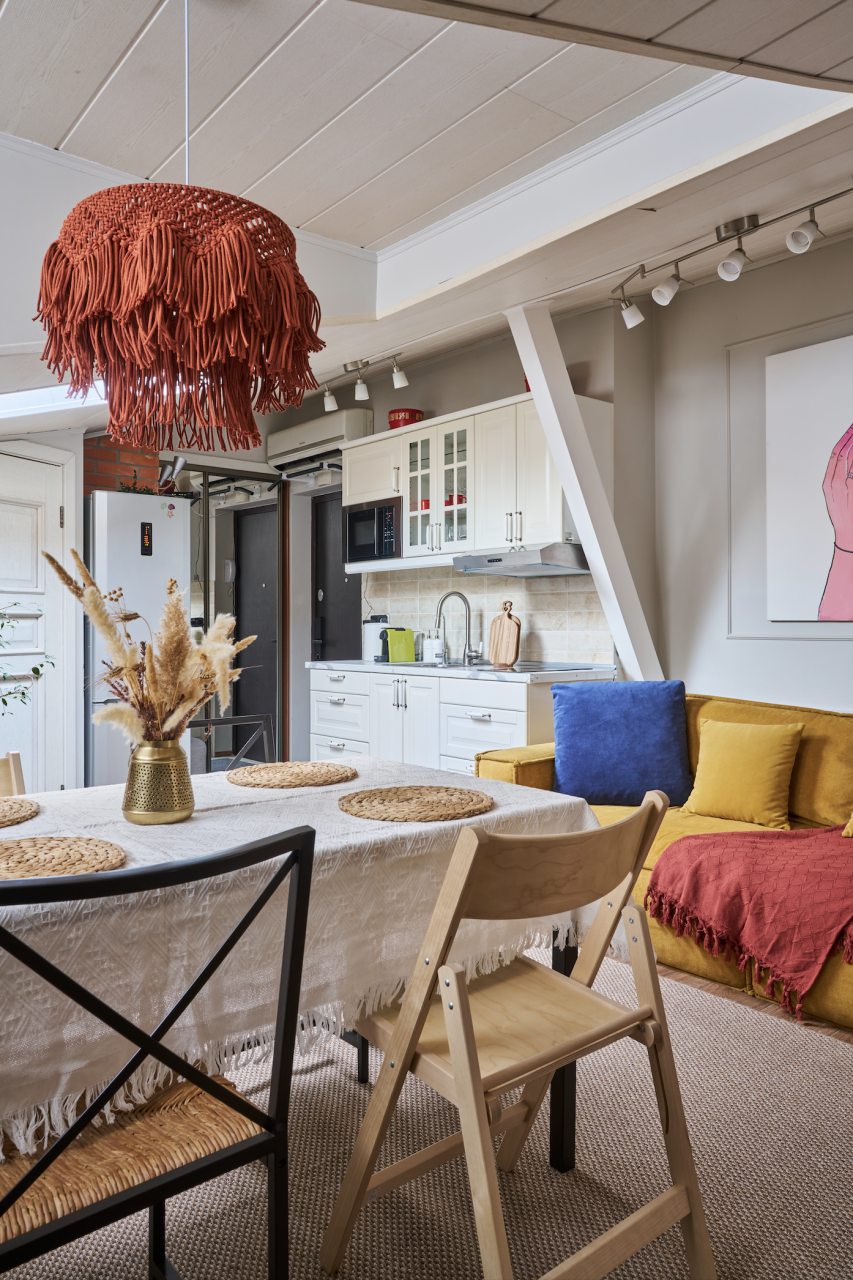 Кухня оборудована светлым гарнитуром и необходимой бытовой техникой. Пообедать можно в одном из ближайших кафе.