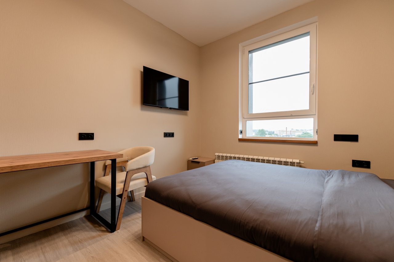 К размещению гостей представлены просторные и светлые апартаменты. Каждый из них оснащён современной техникой, мебелью, спальными местами, ванной комнатой. Есть доступ к сети Wi-Fi.