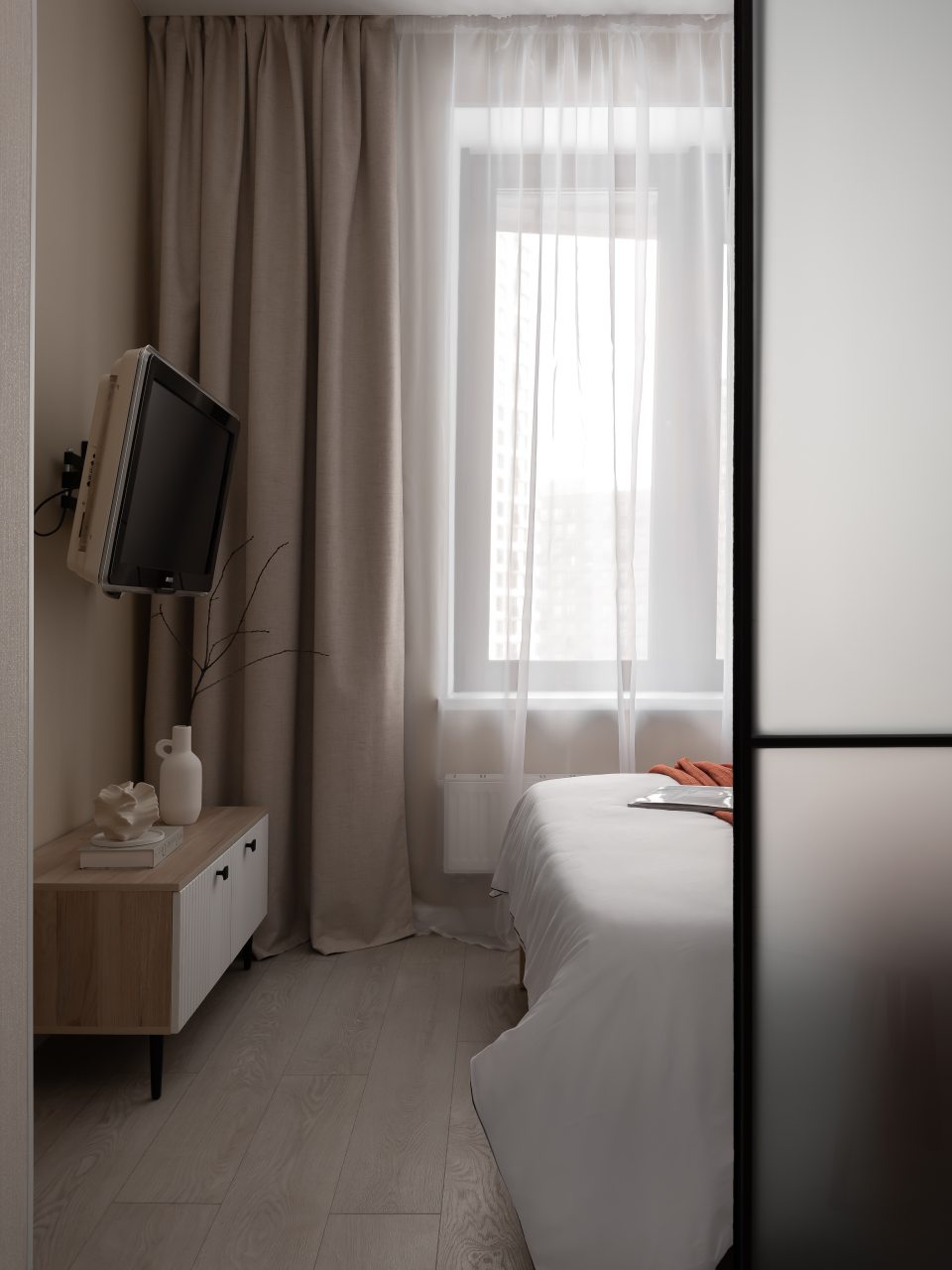 Для размещения представлены современные апартаменты в приятных оттенках цветовой гаммы. Они оснащены качественной мебелью и современной техникой: двуспальная кровать с белоснежным постельным бельем, телевизор, мягкий диван, рабочая зона. В санузле есть средства гигиены и установлена необходимая сантехника.