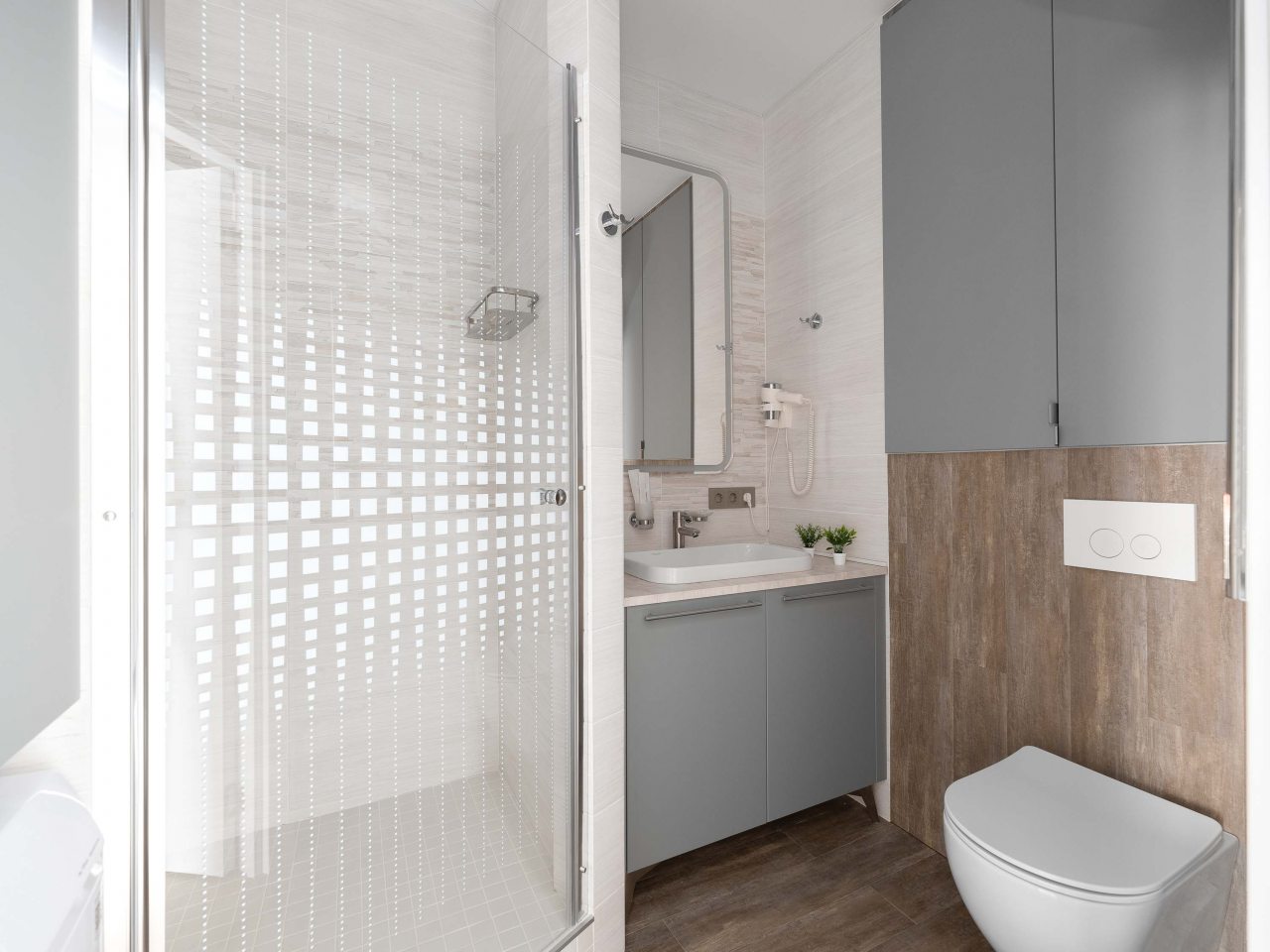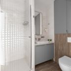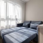Внутри вас ожидает двуспальная кровать, удобный диван, прикроватные лампы, затемненные шторы, лоджия, различная мебель для хранения вещей, гладильные принадлежности, сушилка, стиральная машина, а также санузел с душем и гигиеническими принадлежностями.