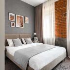 Апартаменты с современным ремонтом оснащены удобной двуспальной кроватью, затемненными шторами, прикроватной мебелью, телевизором, гладильными принадлежностями и собственной ванной комнатой. Санузел имеет комплект качественной сантехники, средства личной гигиены, настенный фен, полотенцесушитель.