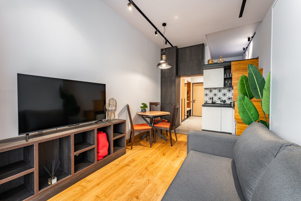 Приятная квартира, останавливались здесь на время нашего отпуска. Расположение хорошее, поблизости есть и магазины, и кафе, что очень удобно. Ремонт в квартире современный, мебель качественная, дизайн в стиле минимализм, ничего лишнего, только все необходимое. Готовить комфортно, посуда есть, техника работает. Красивый вид из окна. Обязательно вернемся сюда, если еще раз приедем в город.