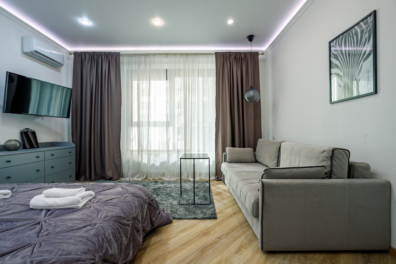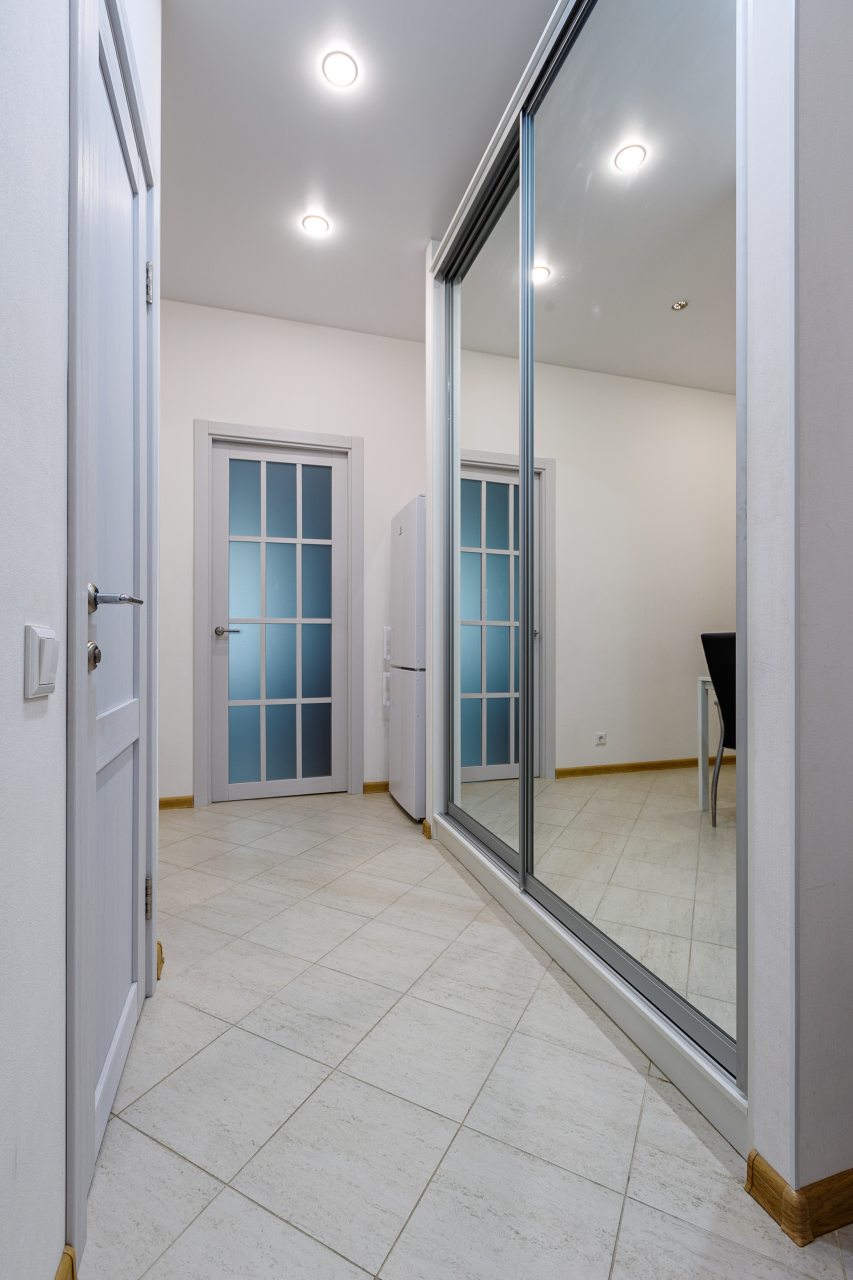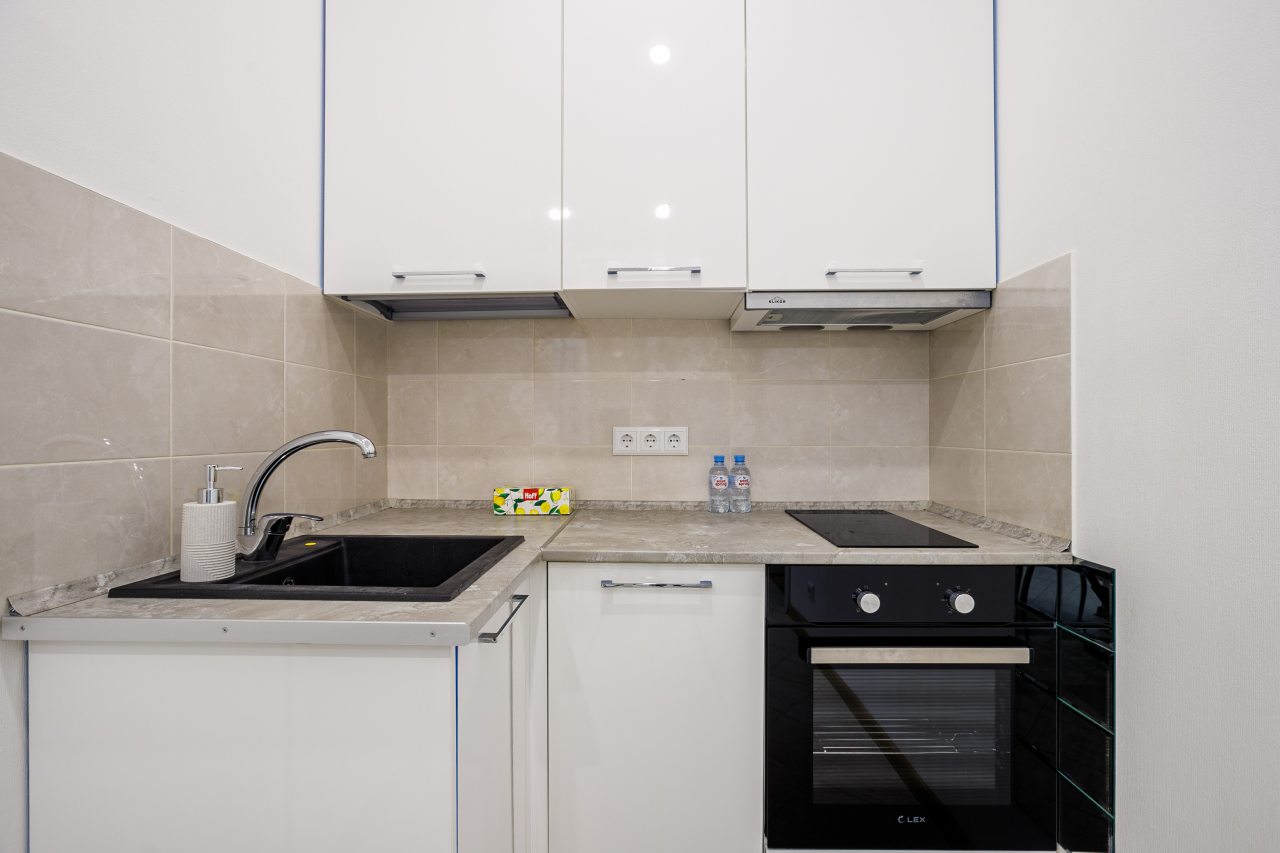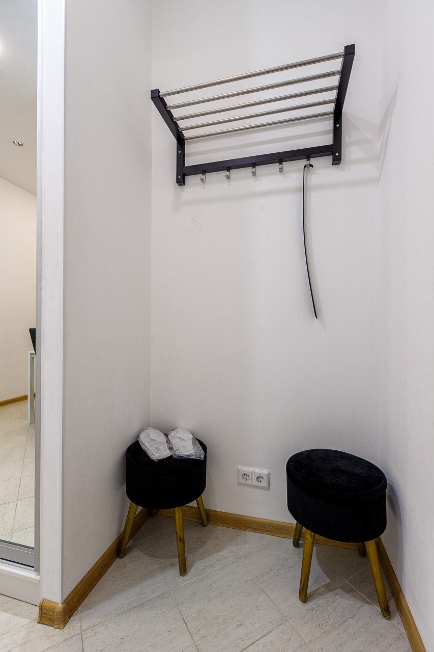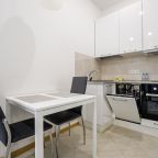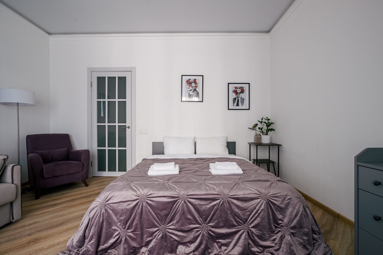 В Москве жили в данных апартаментах и нам очень понравилось. Квартира небольшая, но пространство оформлено в духе современности. Потолок в несколько уровней с подсветкой и интересными декорами смотрится конечно шикарно. Шкаф вместительный большой до самого потолка, вещи здесь разместить не проблема. Кухня своя есть, как и санузел. Очень здорово!