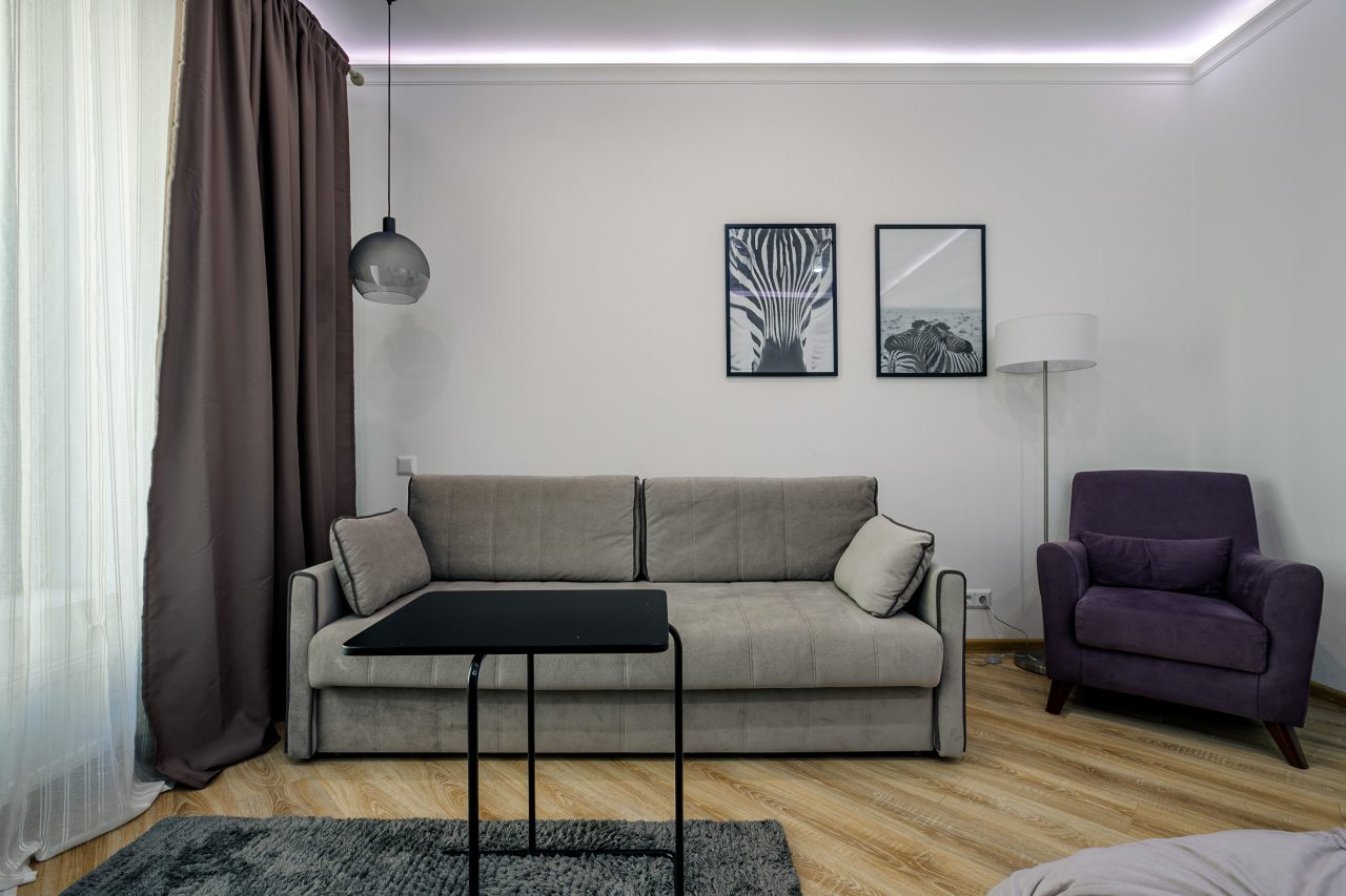 Остановившись в этих апартаментах на выходные, я остался впечатлен их стильным дизайном и удобствами. Квартира была просторной и чистой, с современной мебелью и кухонными принадлежностями, что сделало пребывание комфортным.