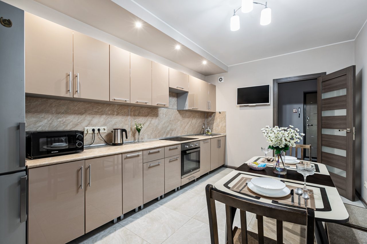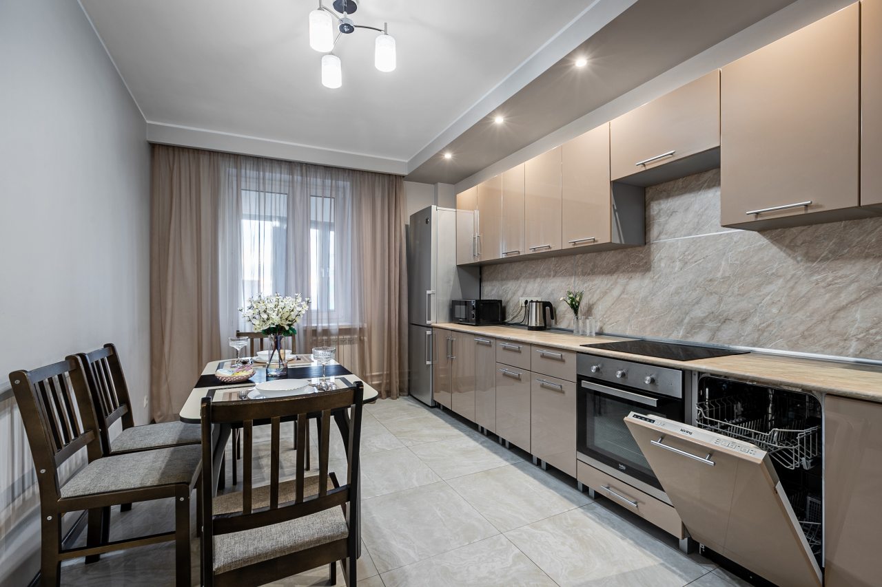 Апартаменты нас порадовали! Здесь очень комфортно проживать, всё чисто, уютно, ремонт современный. В непосредственной близости есть места, где можно прогуляться всей семьёй и вкусно перекусить! Жена была в восторге от кухни, она у меня очень любит готовить! Всё отлично! Рекомендуем!
