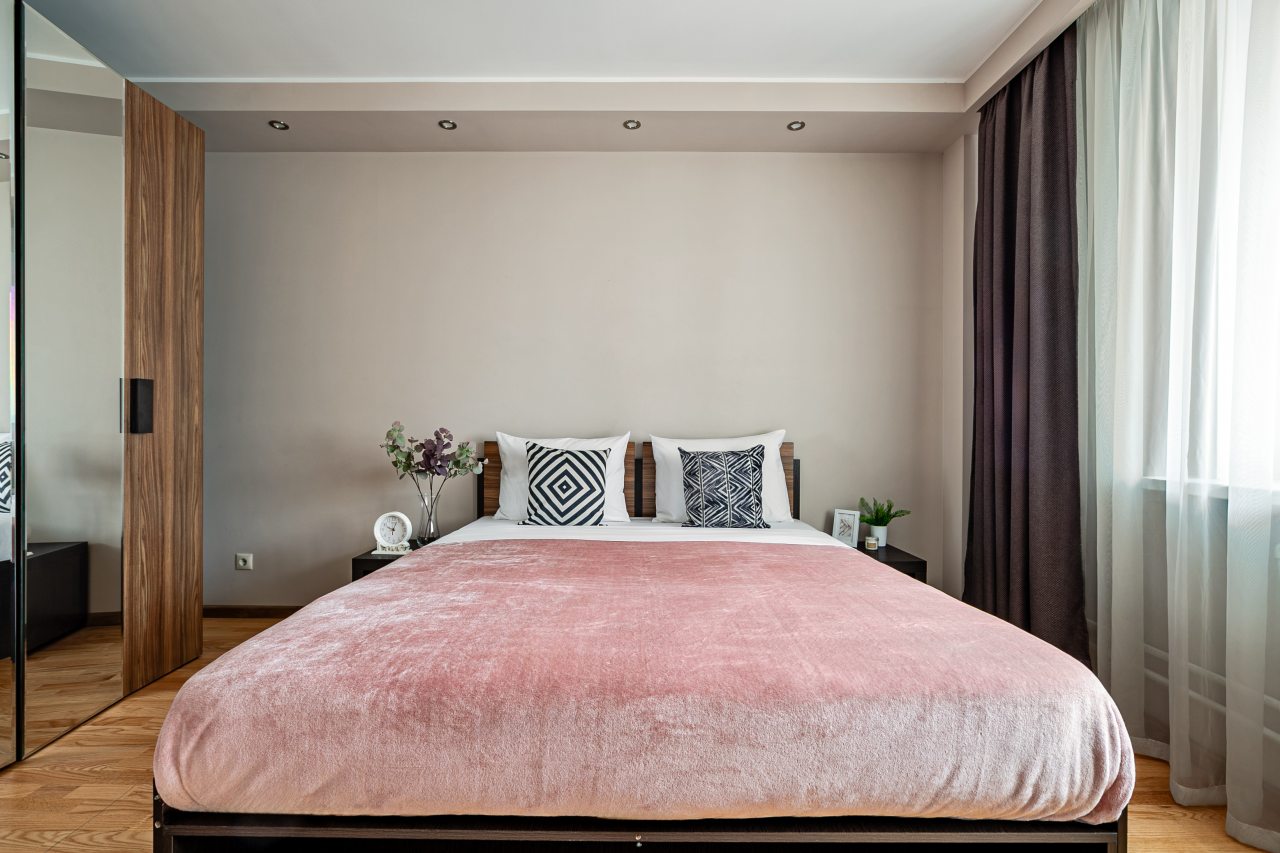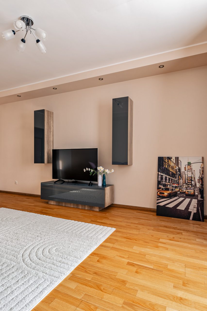 Нормальная просторная квартира. Минималистичное обустройство, нет ничего лишнего. Жили тут большой компанией, отлично все разместились, тесно не было, всем хватило удобств. Расположение порадовало, оно даже лучше, чем я предполагала. Метро совсем рядом, а под рукой также вся городская инфраструктура.