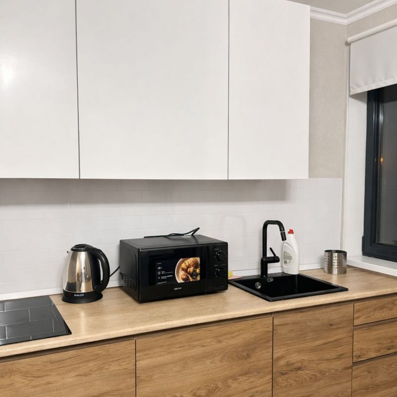 На кухне есть холодильник, электрочайник, микроволновая печь, варочная панель, духовой шкаф. В 0,2 км от объекта находится продуктовый магазин «Пятёрочка».