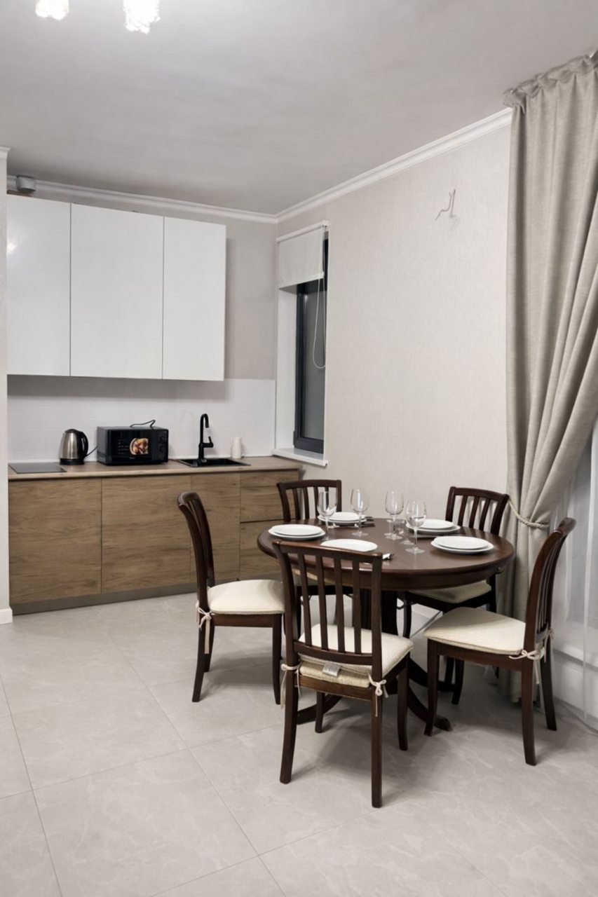 Уютная и комфортабельная квартира. Оставался здесь на 4 суток. Специально искал размещение недалеко от места своего работы. В квартире есть все удобства, стильные интерьеры, современная техника, посуда и столовые приборы. Недалеко метро, в здании дома есть кофейни, магазины и другие сервисы.