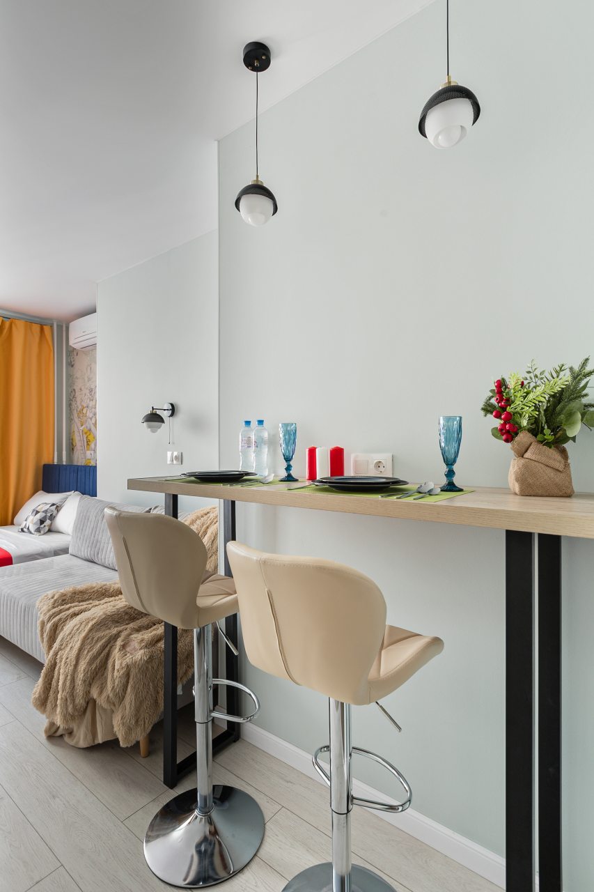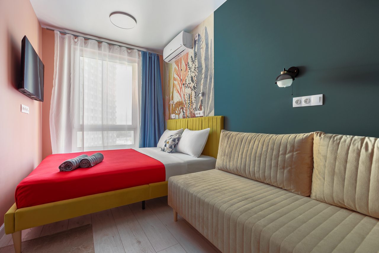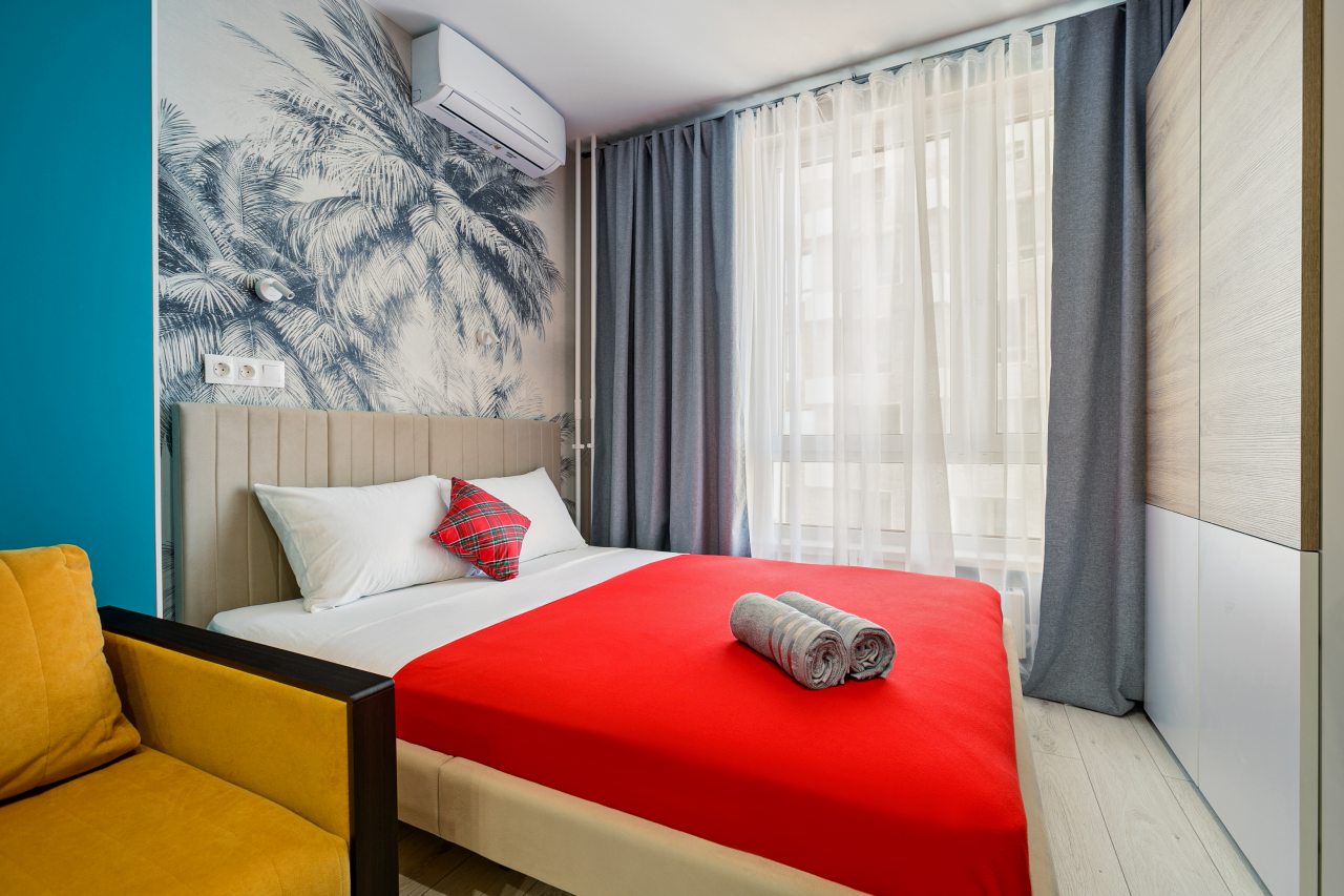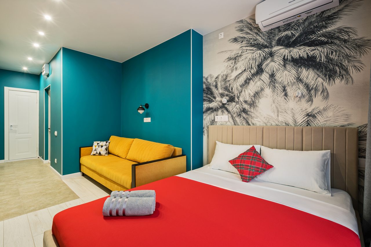Апартаменты с современным ремонтом в ярких цветах. Здесь гости смогут разместиться со всеми удобствами в комфортных условия. Квартира меблирована и оснащена техникой.