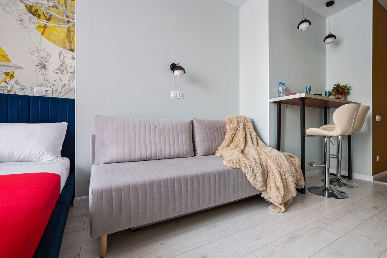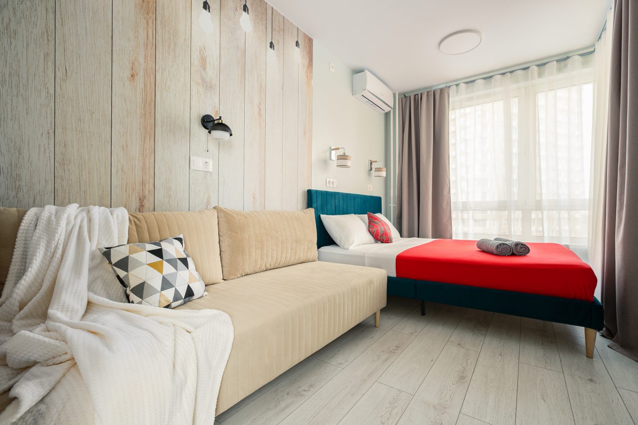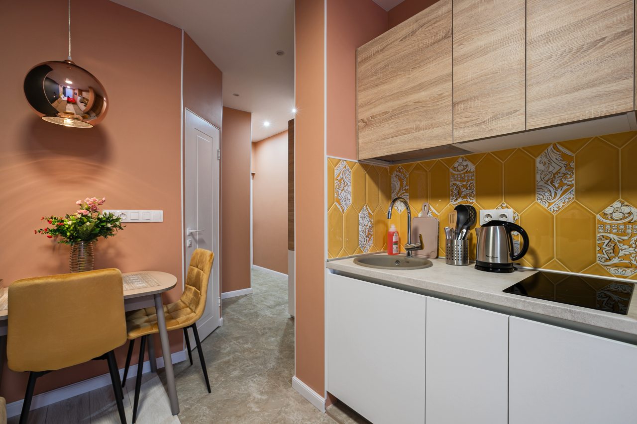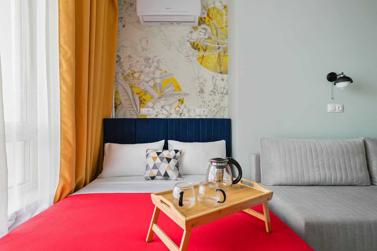 Апартаменты с современным ремонтом в ярких цветах. Здесь гости смогут разместиться со всеми удобствами в комфортных условия. Квартира меблирована и оснащена техникой.