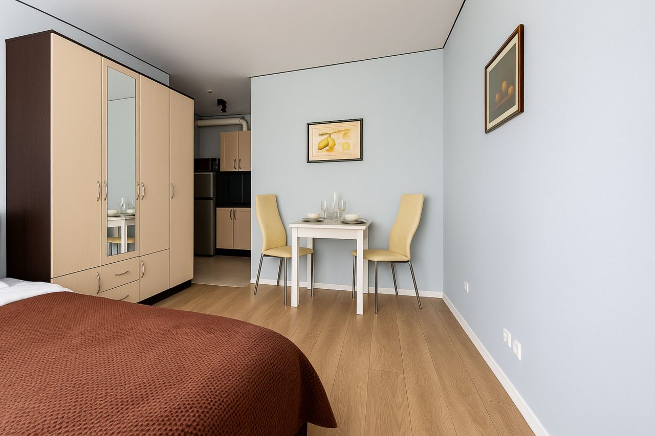 Всё чисто, тихо, приятно находиться. Район с развитой инфраструктурой, всё рядом. Апартаменты просторные, воздух не «стоит», легко дышится. Заселение организовано грамотно, всё четко и без задержек. Особенно приятно, что всё работает как надо — ни с техникой, ни с водой проблем не было. Для поездки на несколько дней — отличное решение.