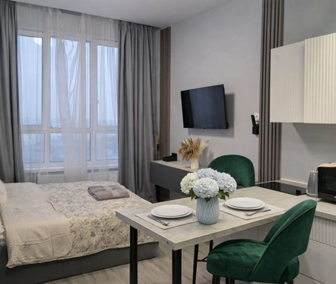 Прекрасные апартаменты. Уютно и есть все что нужно. Кровать очень удобная, постельное белье чистое. Хороший вид из окна. Готовили сами, вся техника в рабочем состоянии.