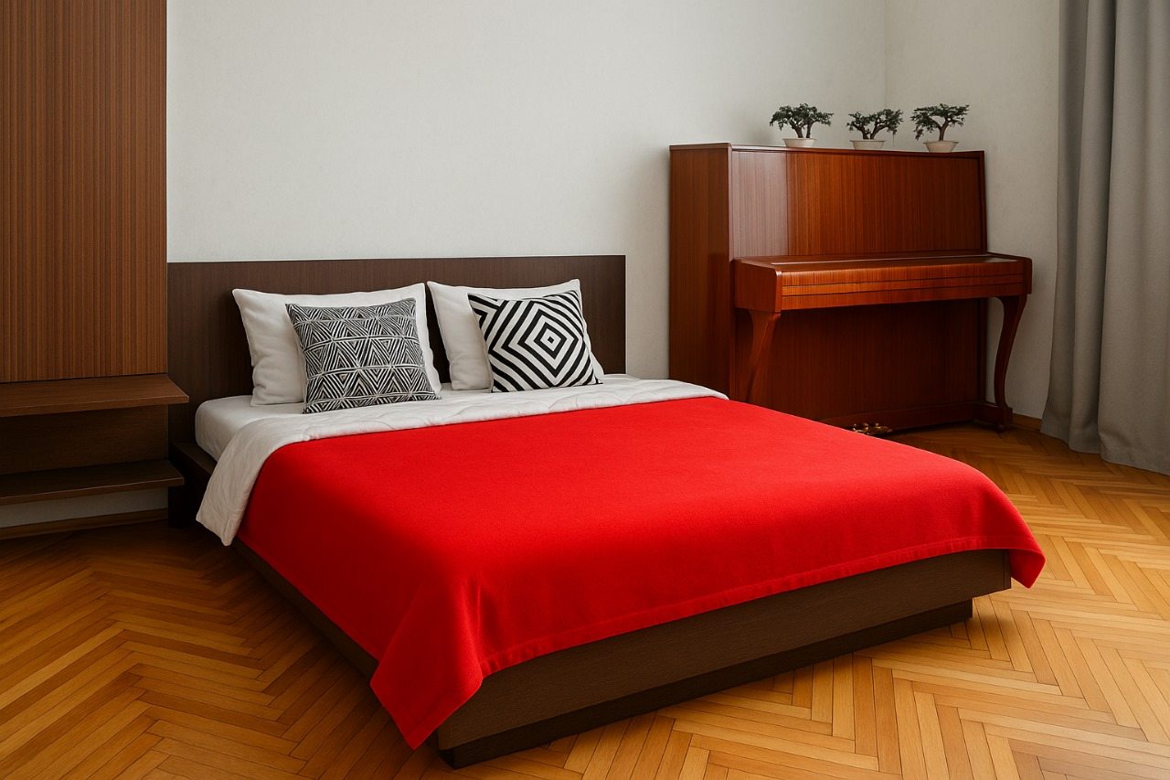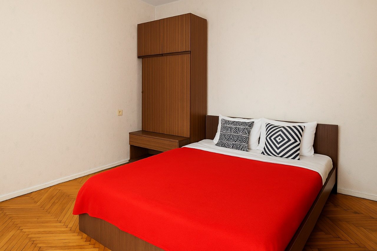 Внутри вас ожидает вся необходимая мебель и техника для комфортного проживания, включая большую и удобную двуспальную кровать, шкаф, телевизор, полноценную ванну, стиральную машину, набор полотенец.