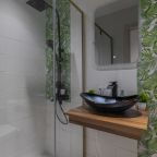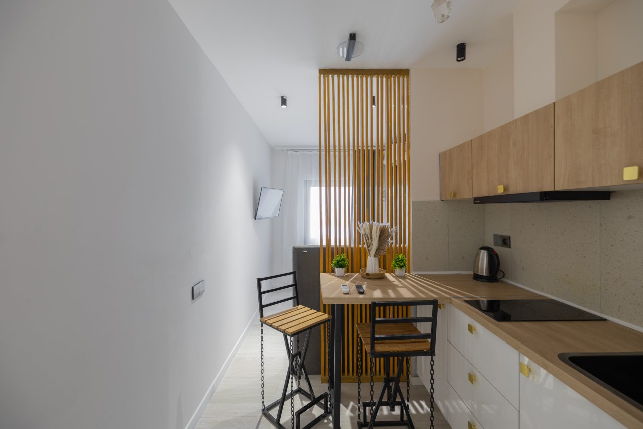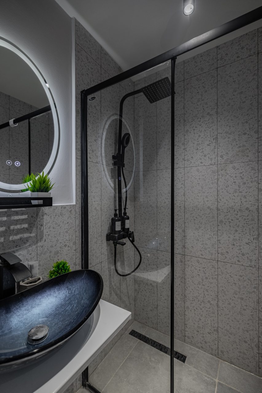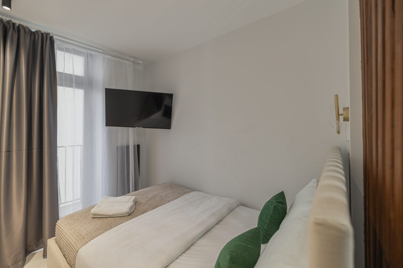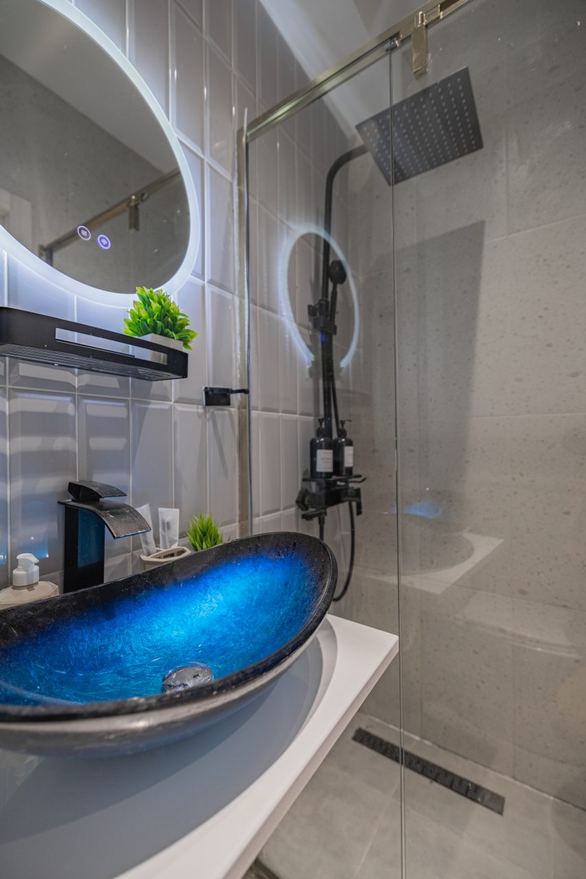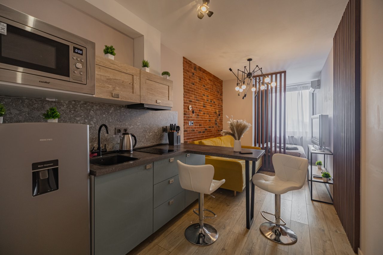 Апартаменты подойдут для 2-4 гостей. Они выполнены в современном стиле интерьера и оснащены мебелью и техникой для комфортного времяпровождения. В санузле установлен душ и имеются средства гигиены.