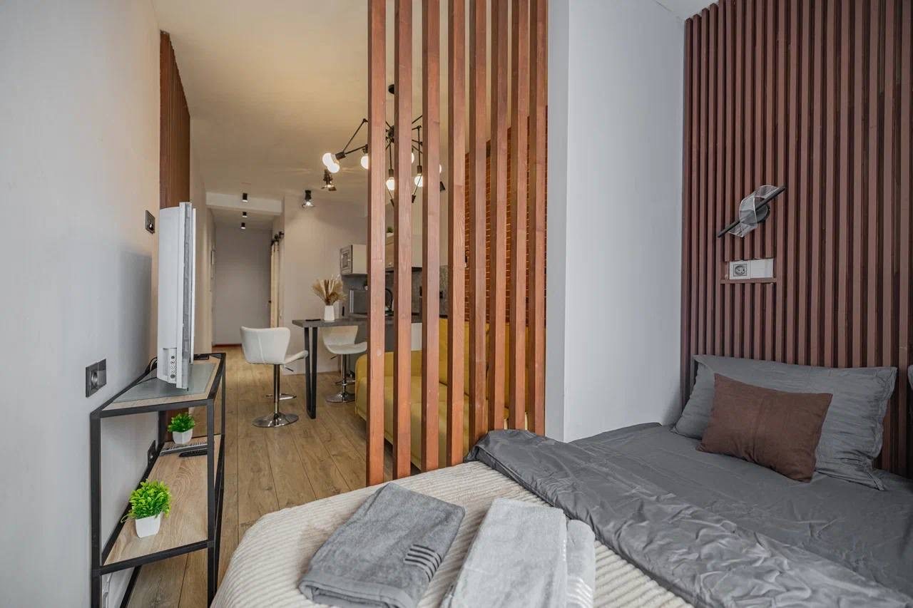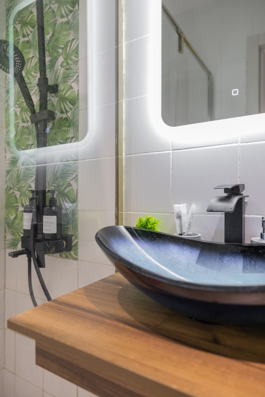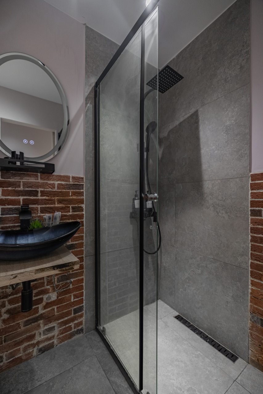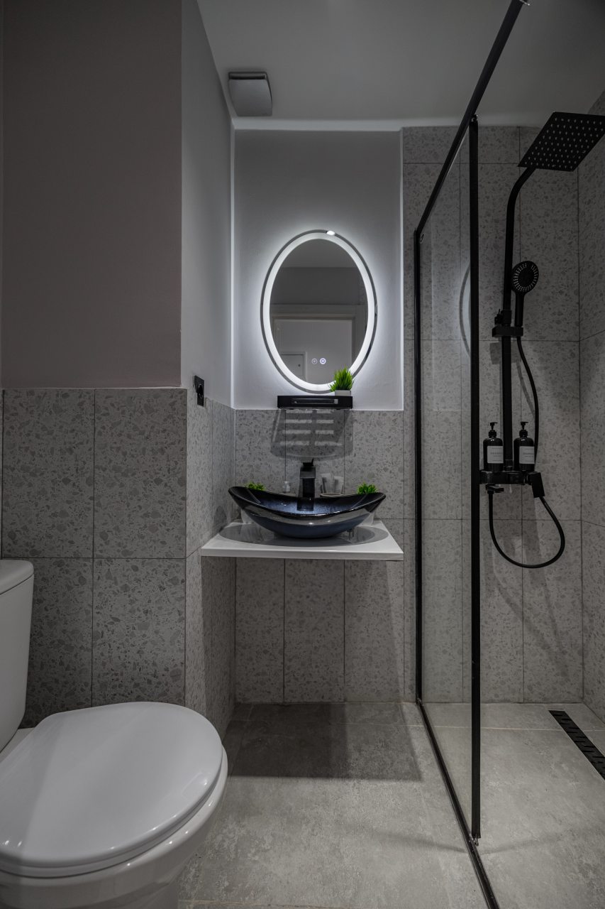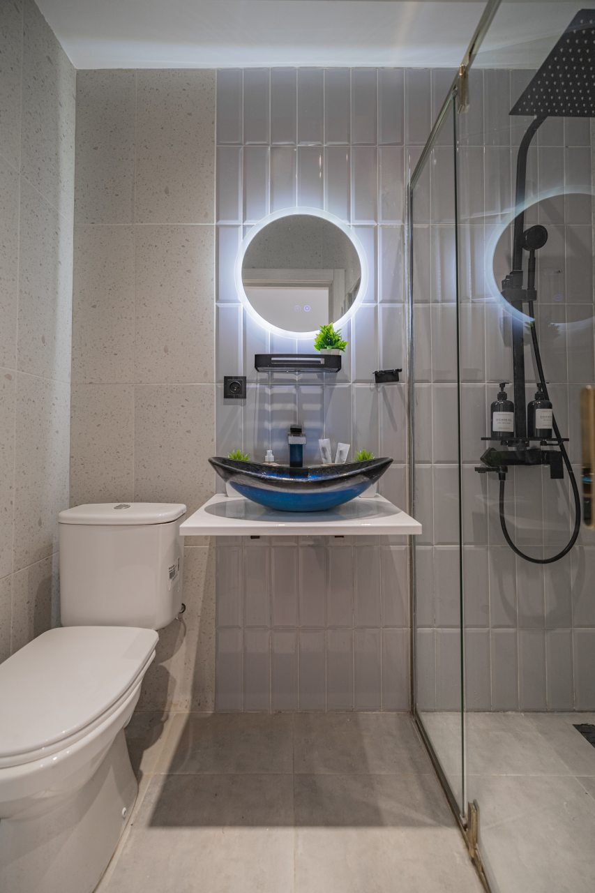 Апартаменты подойдут для 2-4 гостей. Они выполнены в современном стиле интерьера и оснащены мебелью и техникой для комфортного времяпровождения. В санузле установлен душ и имеются средства гигиены.
