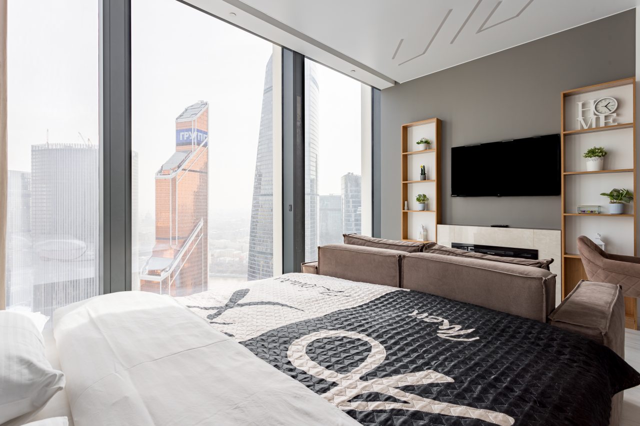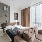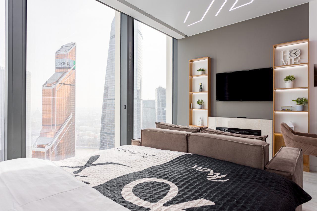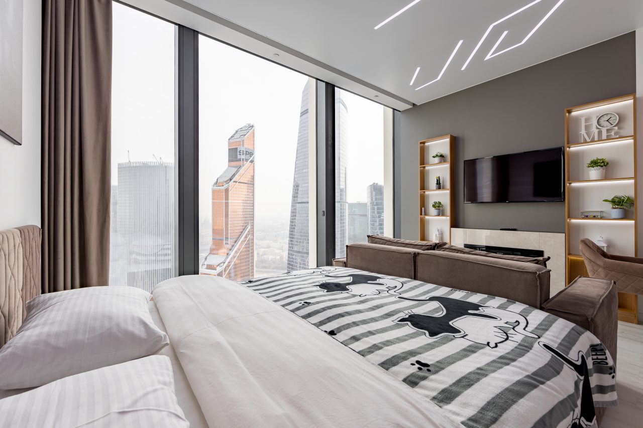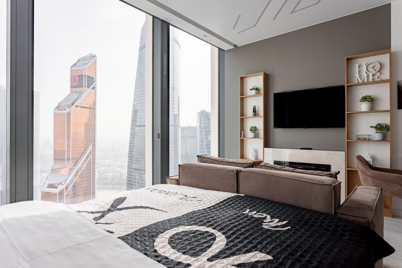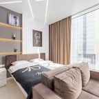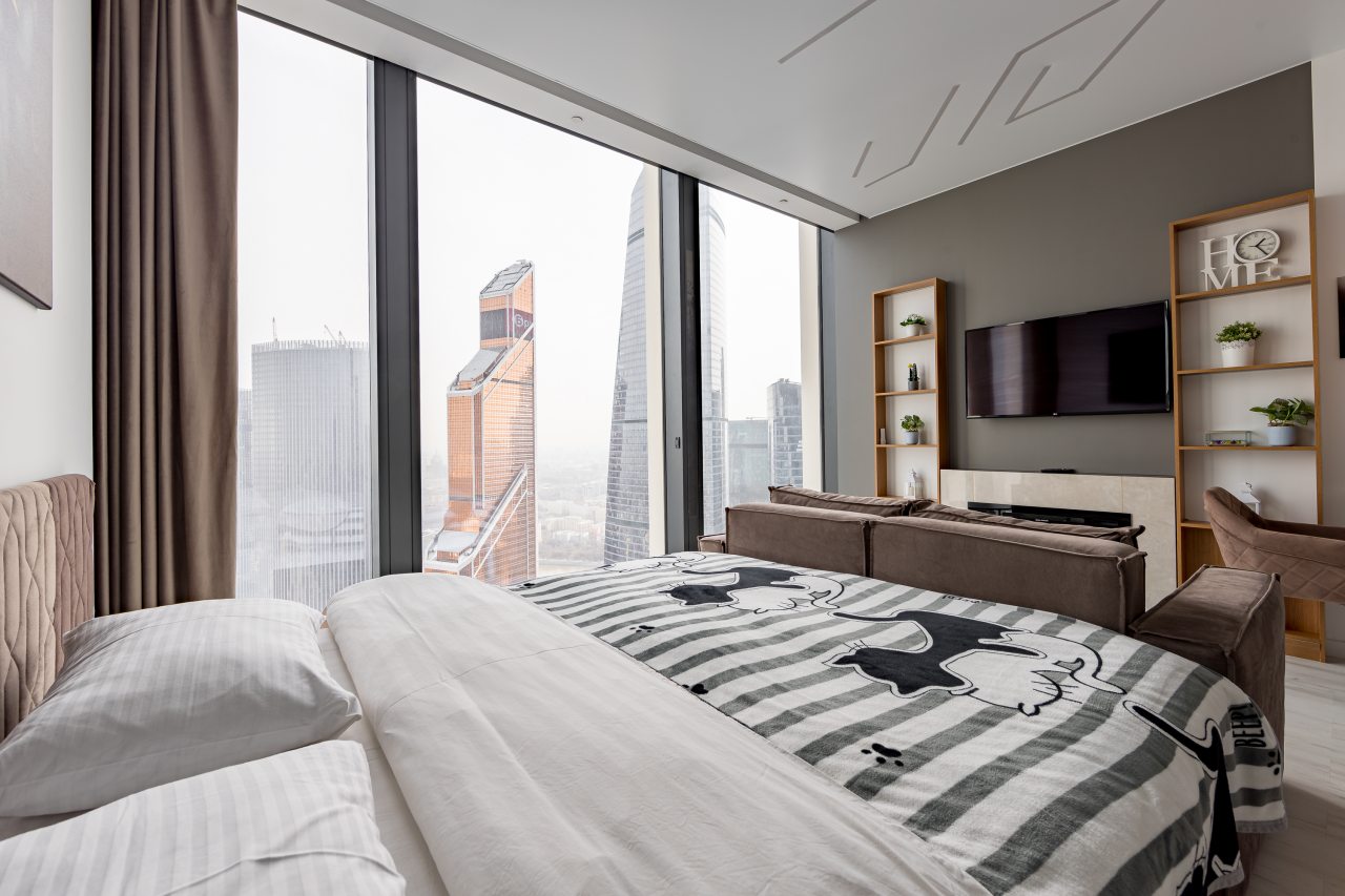 Для размещения подготовлены современные двухместные апартаменты с интерьером в приятных цветовых решениях. Они укомплектованы набором качественной мебели и техники для приятного времяпровождения и отдыха: удобная двуспальная кровать, мягкий диван, телевизор, вместительный шкаф для хранения личных вещей. В ванной комнате имеются индивидуальные средства гигиены. Из панорамных окон открывается потрясающий вид на город.