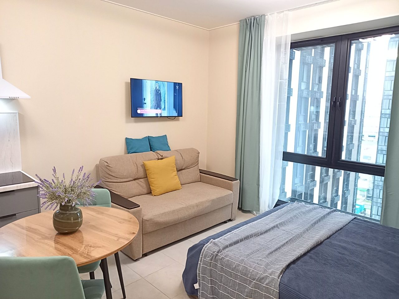 Студия комфортабельная, чистая, есть рабочая техника, мягкая мебель. Хозяева очень приветливые и гостеприимные! Заселились достаточно быстро! В шаговой доступности есть вся необходимая инфраструктура.