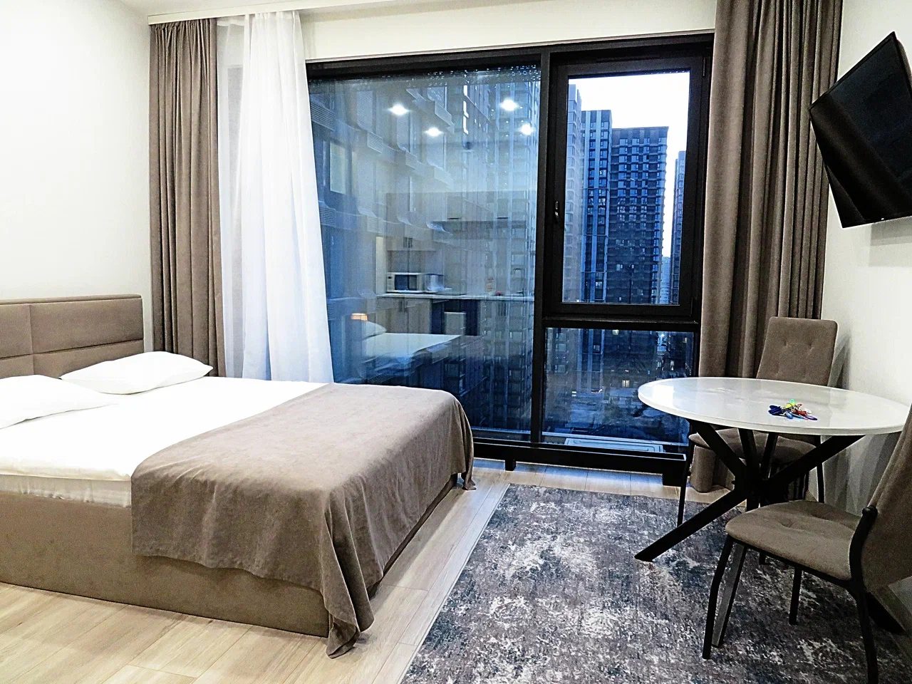 На время визита в Москву мы забронировали онлайн данные апартаменты. Квартира – студия шикарная, современный интерьер в ней продуман до мелочей. Мебель и техника в апартаментах новая, работает отлично. Все пульты с батарейками и включаются приборы с первого прикосновения. Расположен дом с апартаментами недалеко от метро и продуктовых магазинов.