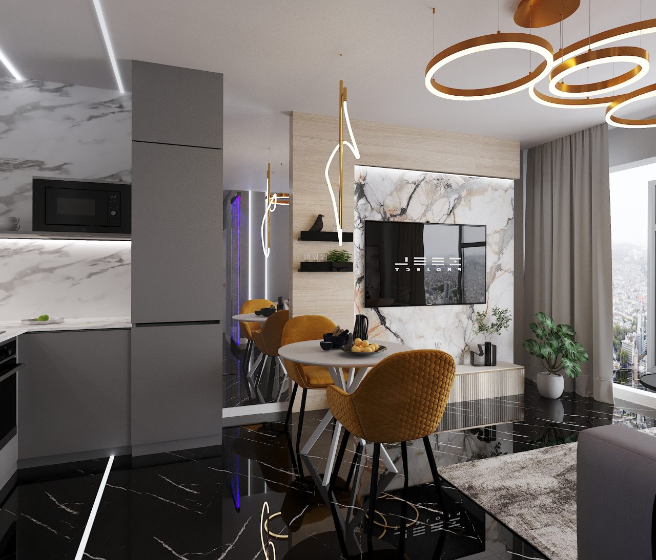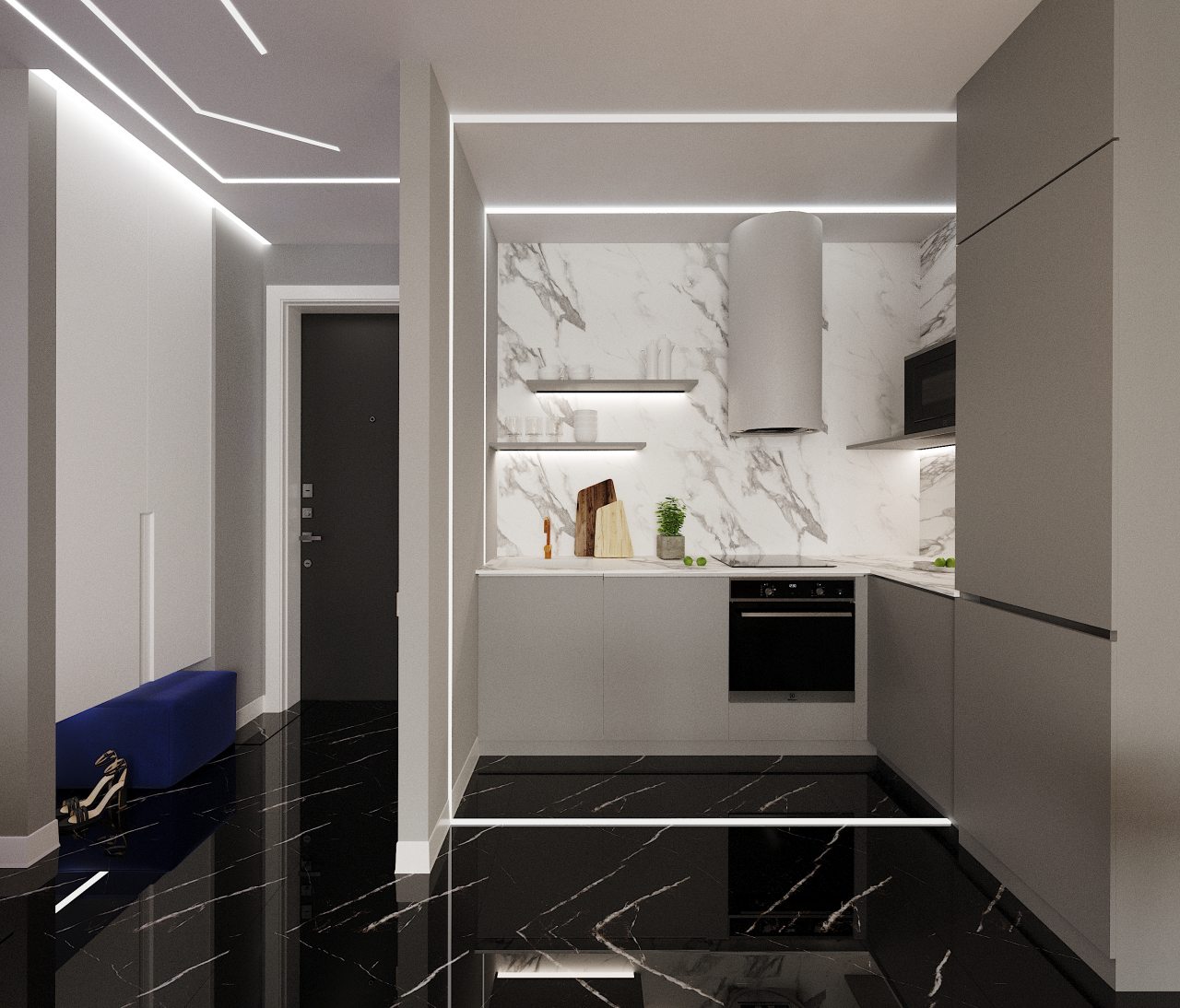 На укомплектованной кухне есть бытовая техника, посуда и другой требуемый инвентарь для готовки. Магазины, кафе и рестораны в пешей доступности.