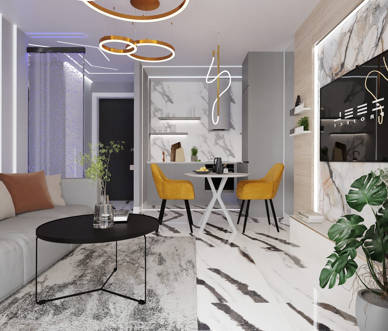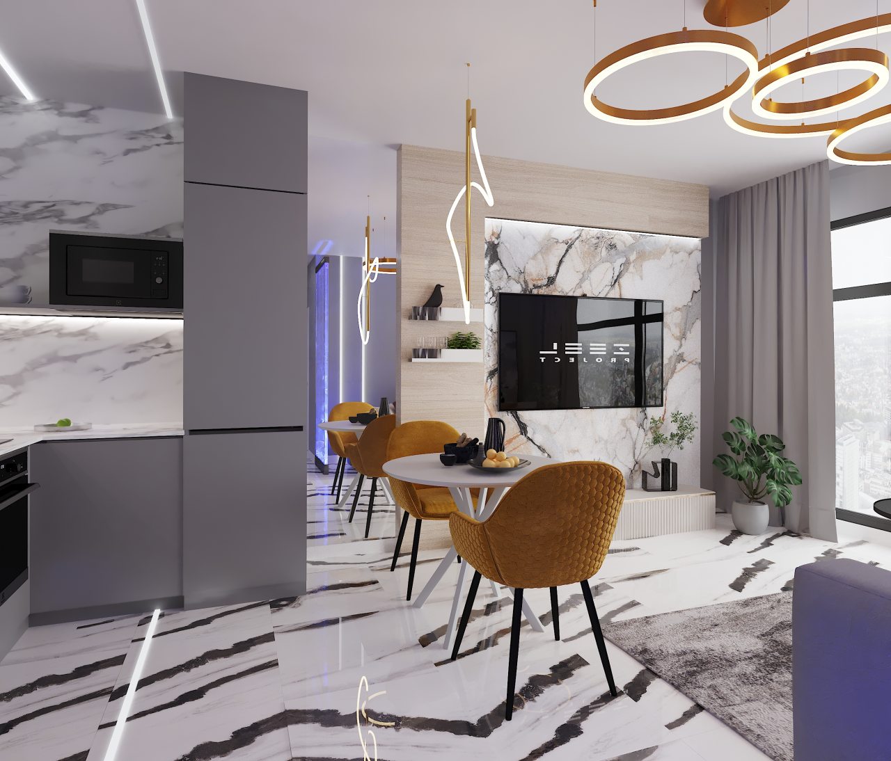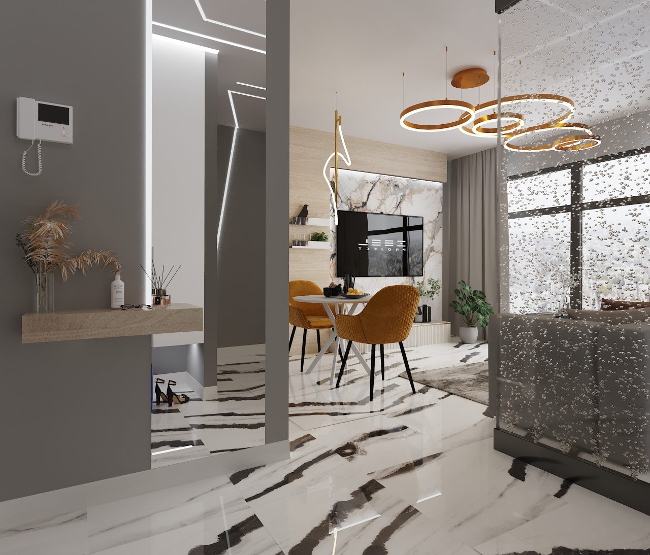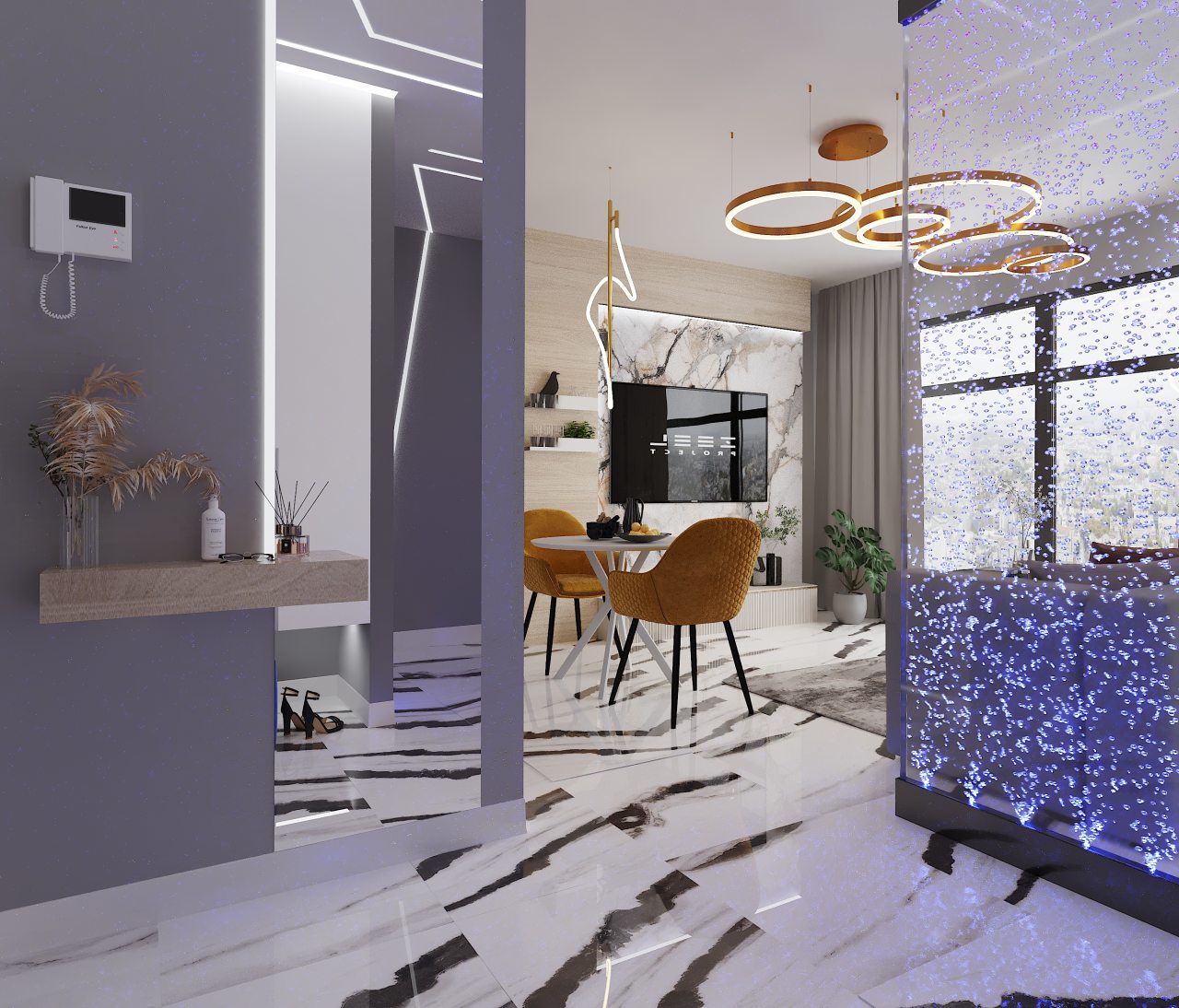 Современные апартаменты оснащены удобной постелью, качественной мебелью, техникой, ванной комнатой со всеми необходимыми принадлежностями. Также имеется доступ к сети Wi-Fi.
