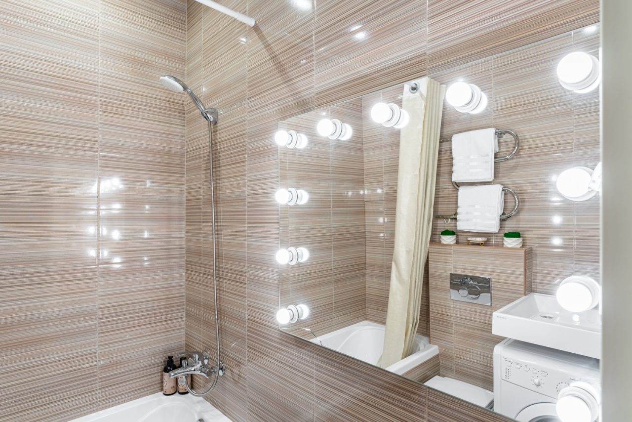 Квартира светлая, просторная, имеет отличную зонированную планировку, оформлена с учётом современных тенденций. Вмещает в себя всё необходимое для комфортного проживания: двуспальную кровать со свежим бельём, диван, вешалки для бережного хранения вещей, шкаф, затемнённые шторы для здорового сна, телевизор, скоростной интернет. В ванной: туалет, раковина, душевая кабина, фен, стиральная машина, зеркало, набор полотенец, чистящие средства.