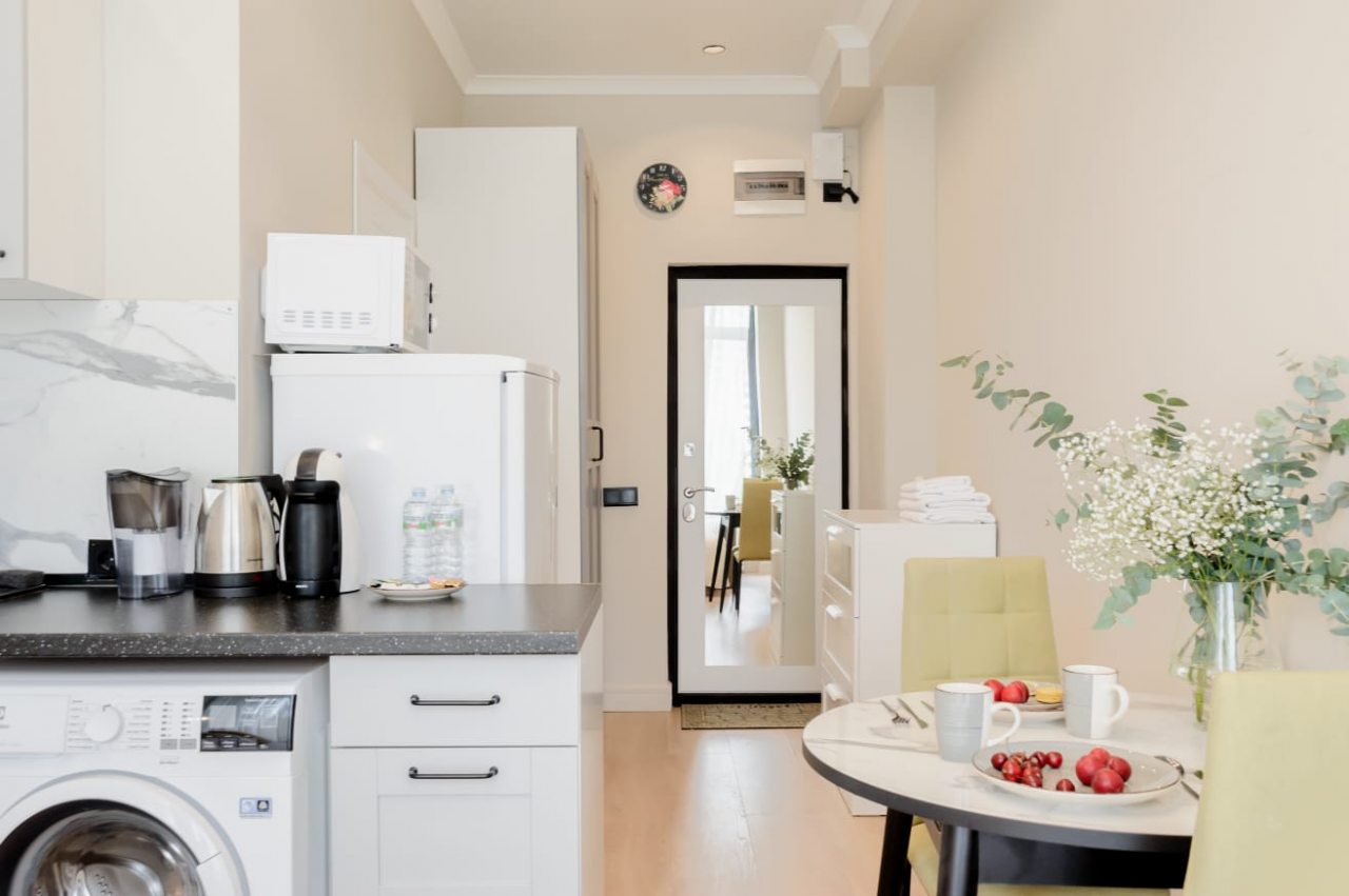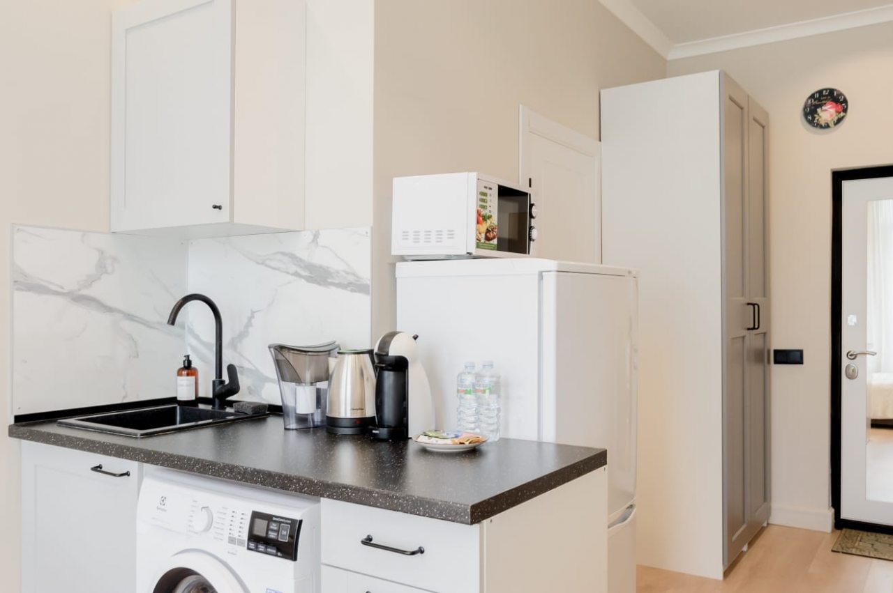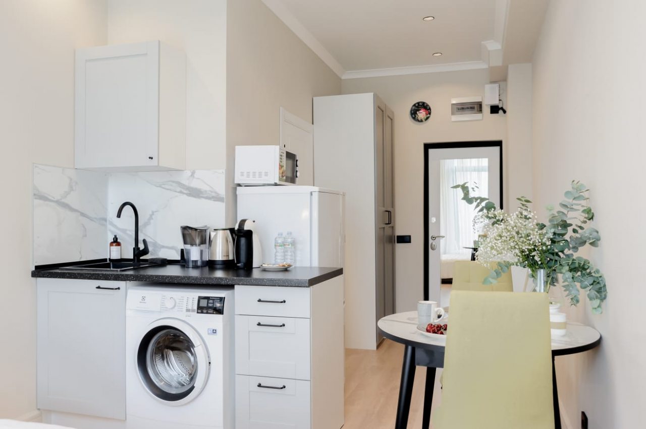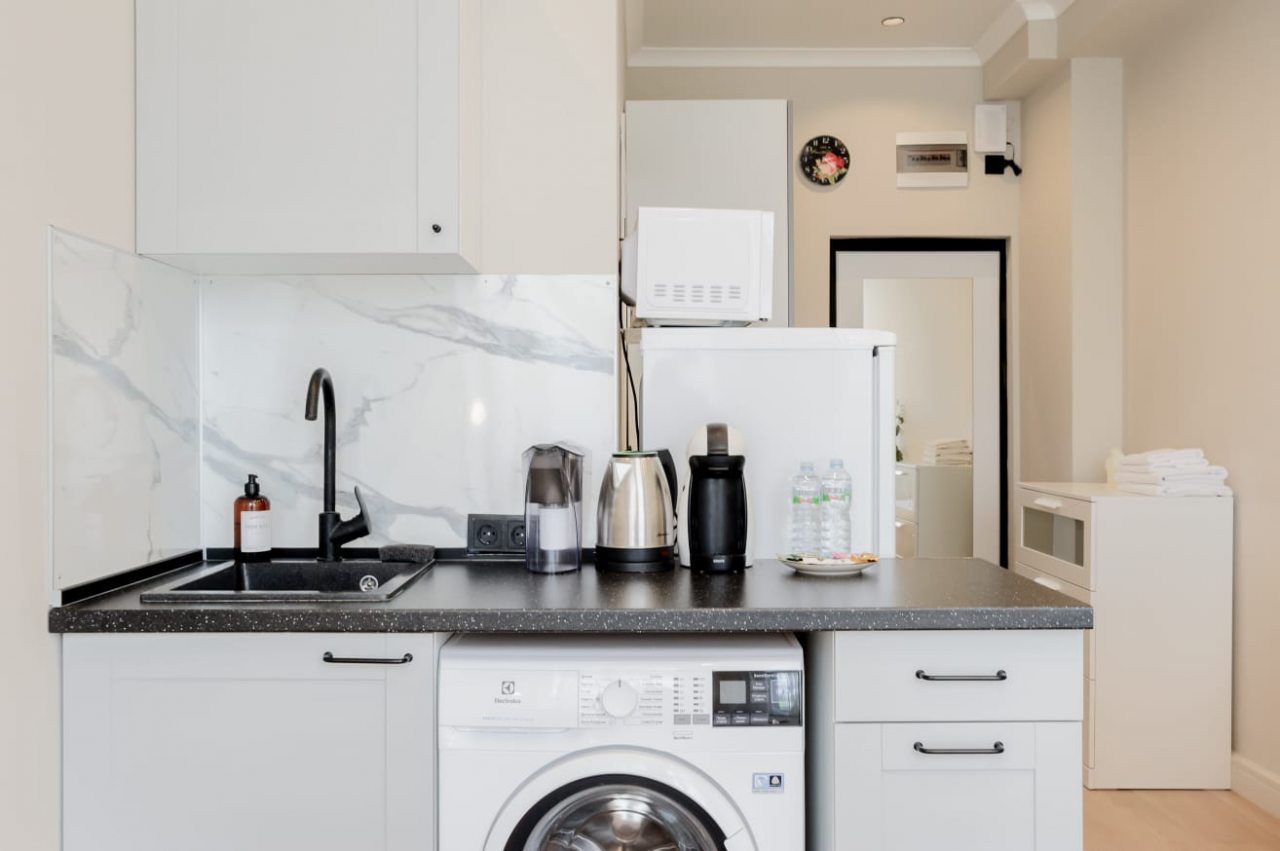 Выбрал апартаменты на сайте бронирования. Немного переживал перед заселением, так как у меня аллергия на пыль. Поэтому сразу всё проверил и остался доволен: порядок здесь поддерживается не только в легкодоступных местах! Так что все остальное уже было хорошо. Я был один, этой студии вполне достаточно для проживания.