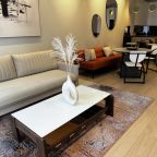 На площади в 73 квадратных метра можно с комфортом разместиться семьей или компанией. В наличии качественная и современная мебель и техника, в том числе двуспальная кровать, диваны, кресла, телевизор, а также полноценная ванна. Из панорамных окон открывается захватывающий вид на город.