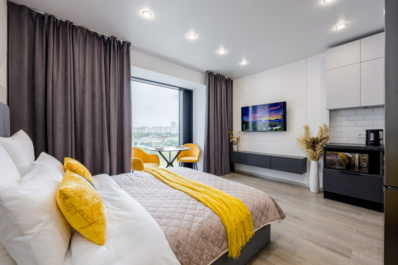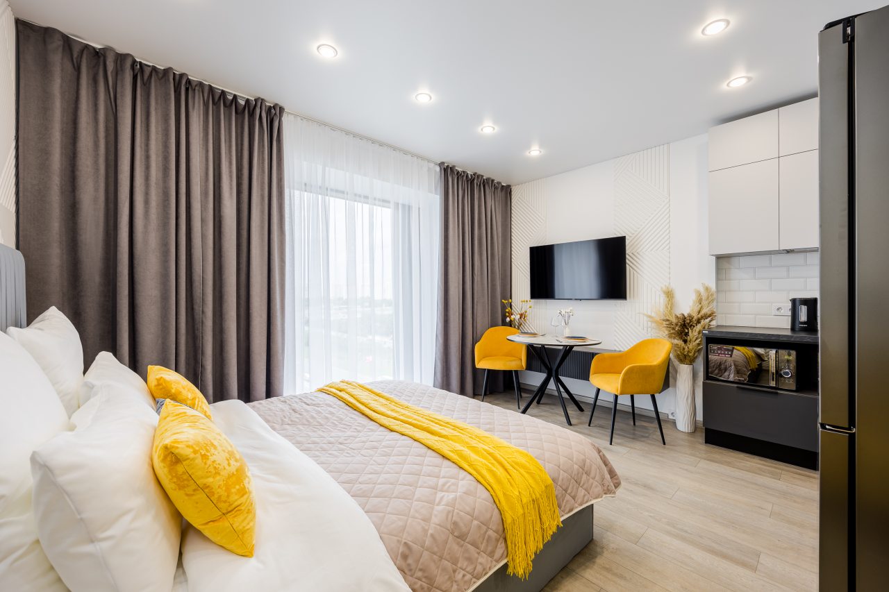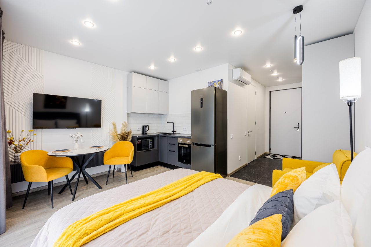 Для размещения подготовлены несколько апартаментов, которые отлично подойдут для семейной пары или индивидуальных путешественников. Они выполнены в современном стиле и ярких акцентах, а также укомплектованы: удобной кроватью, телевизором для просмотра передач, обеденной зоной и ванной комнатой.