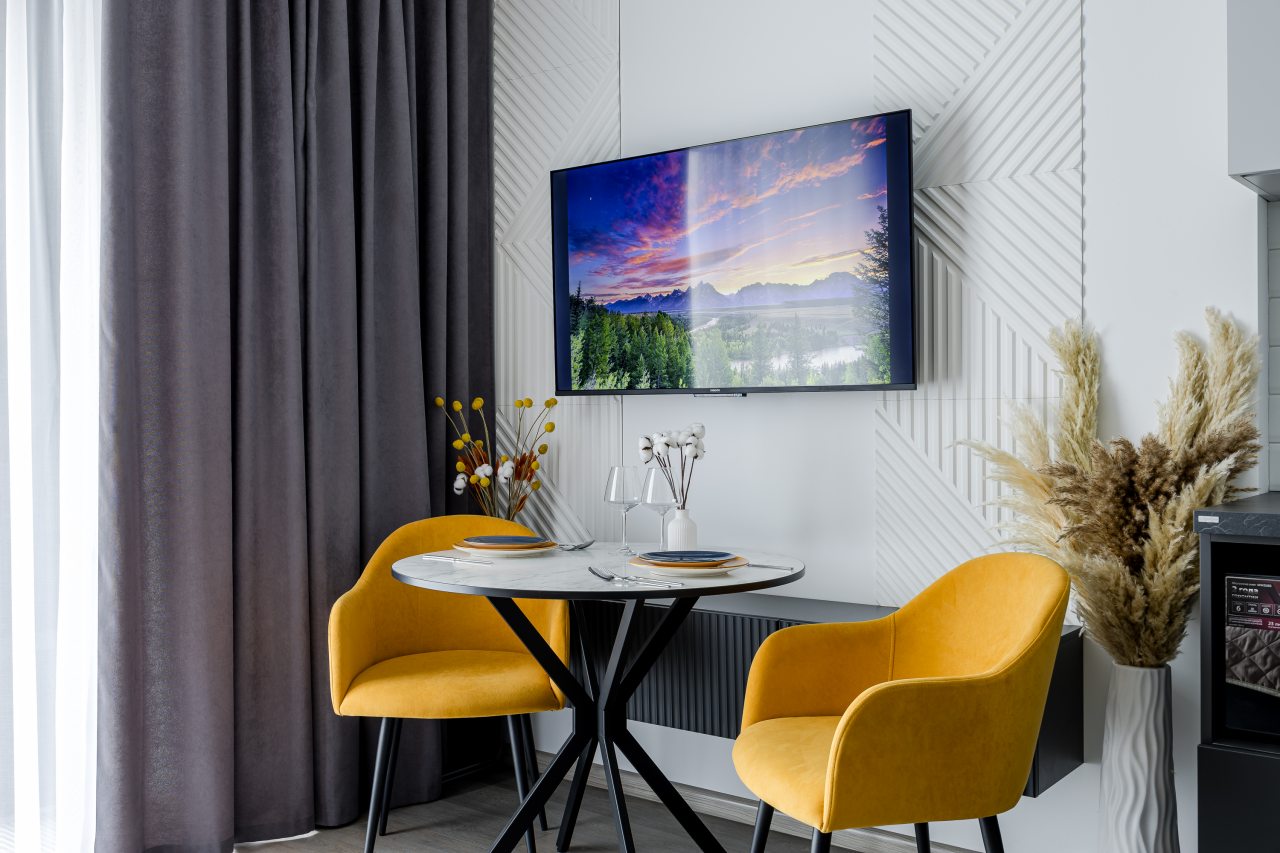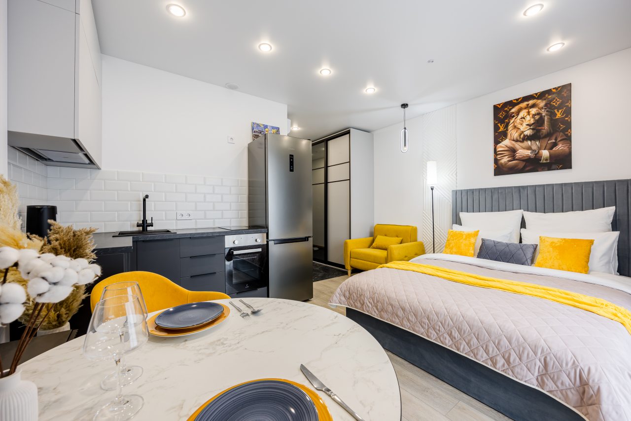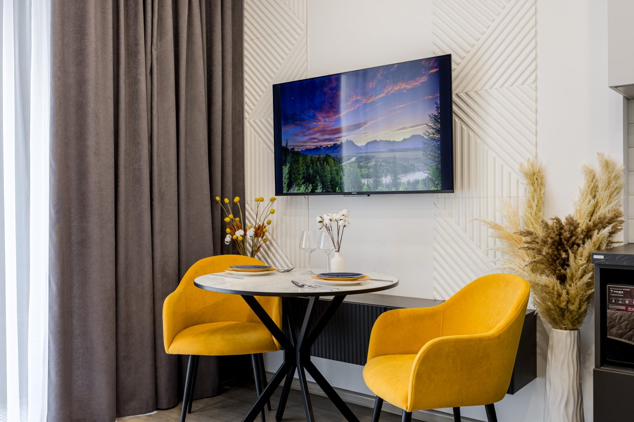 Для размещения подготовлены несколько апартаментов, которые отлично подойдут для семейной пары или индивидуальных путешественников. Они выполнены в современном стиле и ярких акцентах, а также укомплектованы: удобной кроватью, телевизором для просмотра передач, обеденной зоной и ванной комнатой.