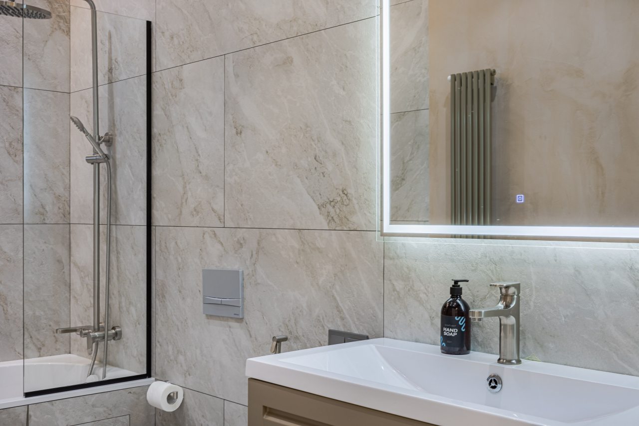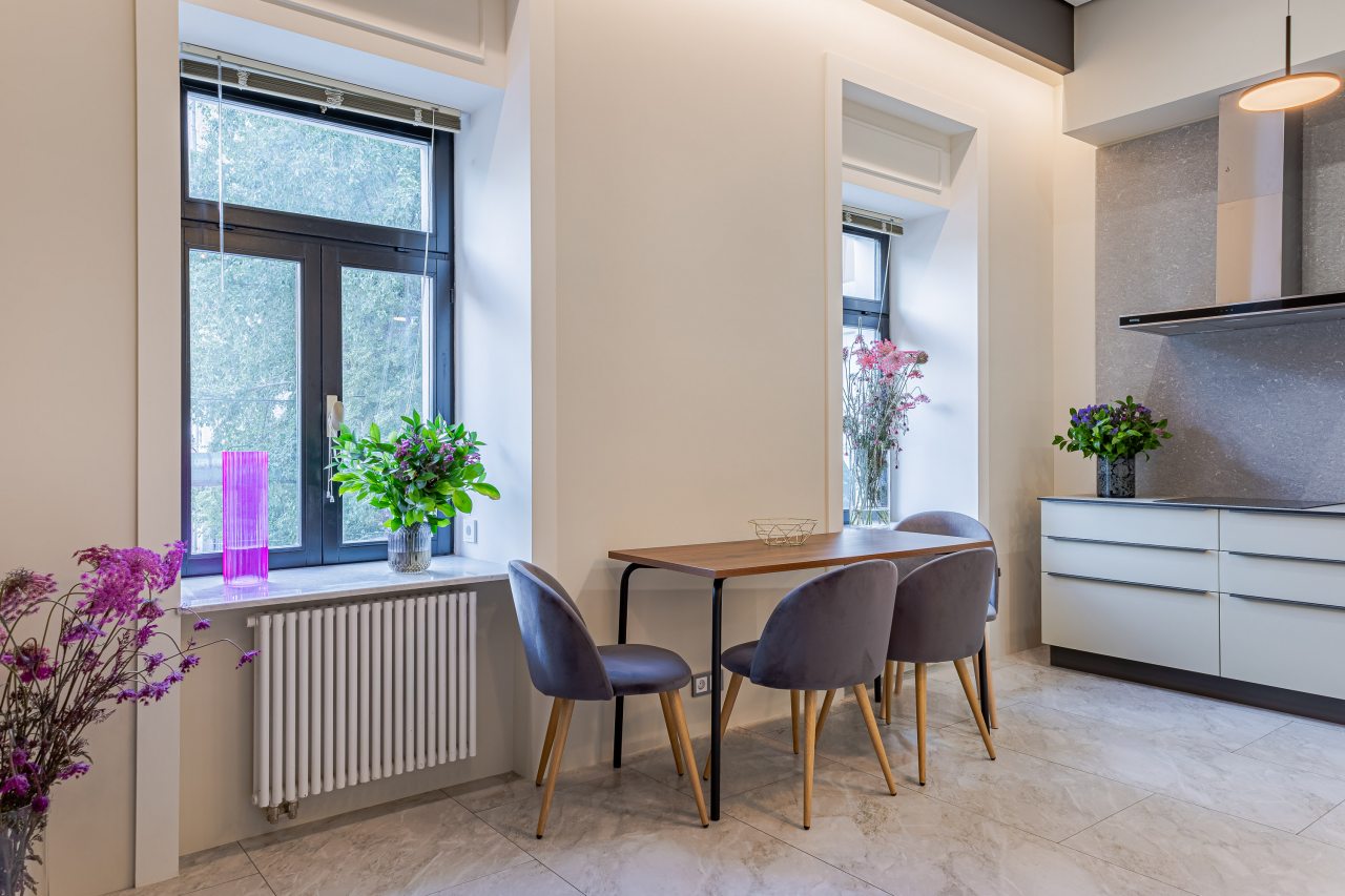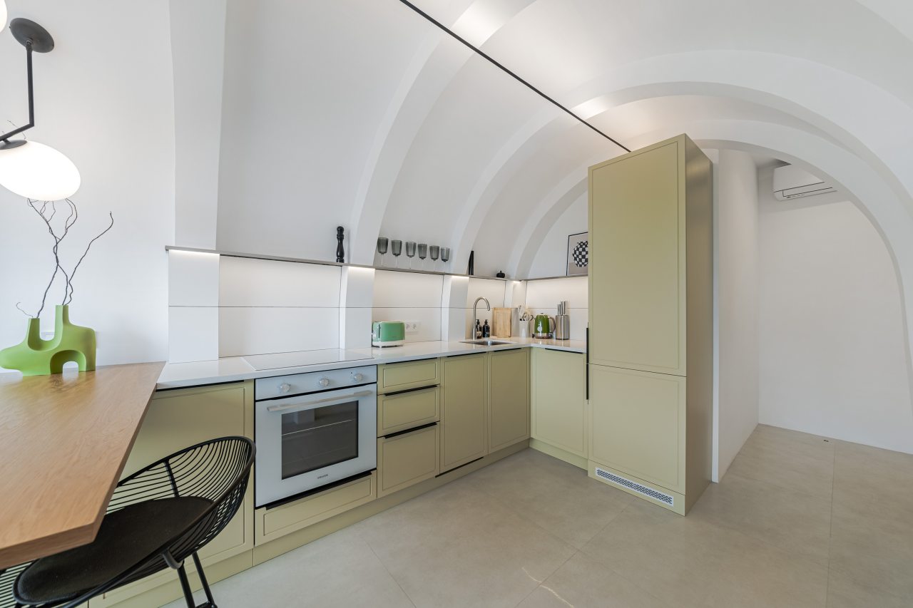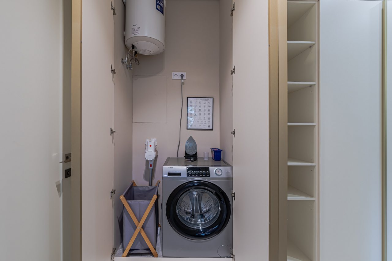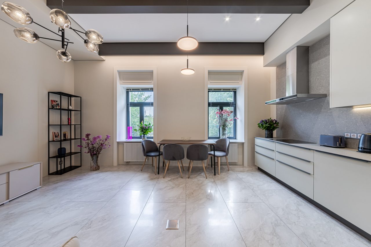 Кухонная зона порадует вас наличием необходимой бытовой техники для приготовления любимых блюд и напитков, включая варочную панель, чайник и духовой шкаф.