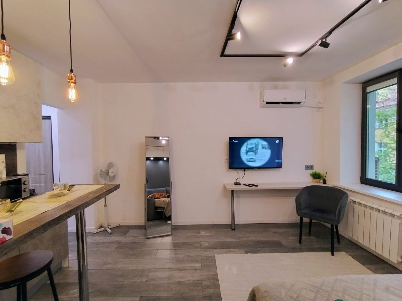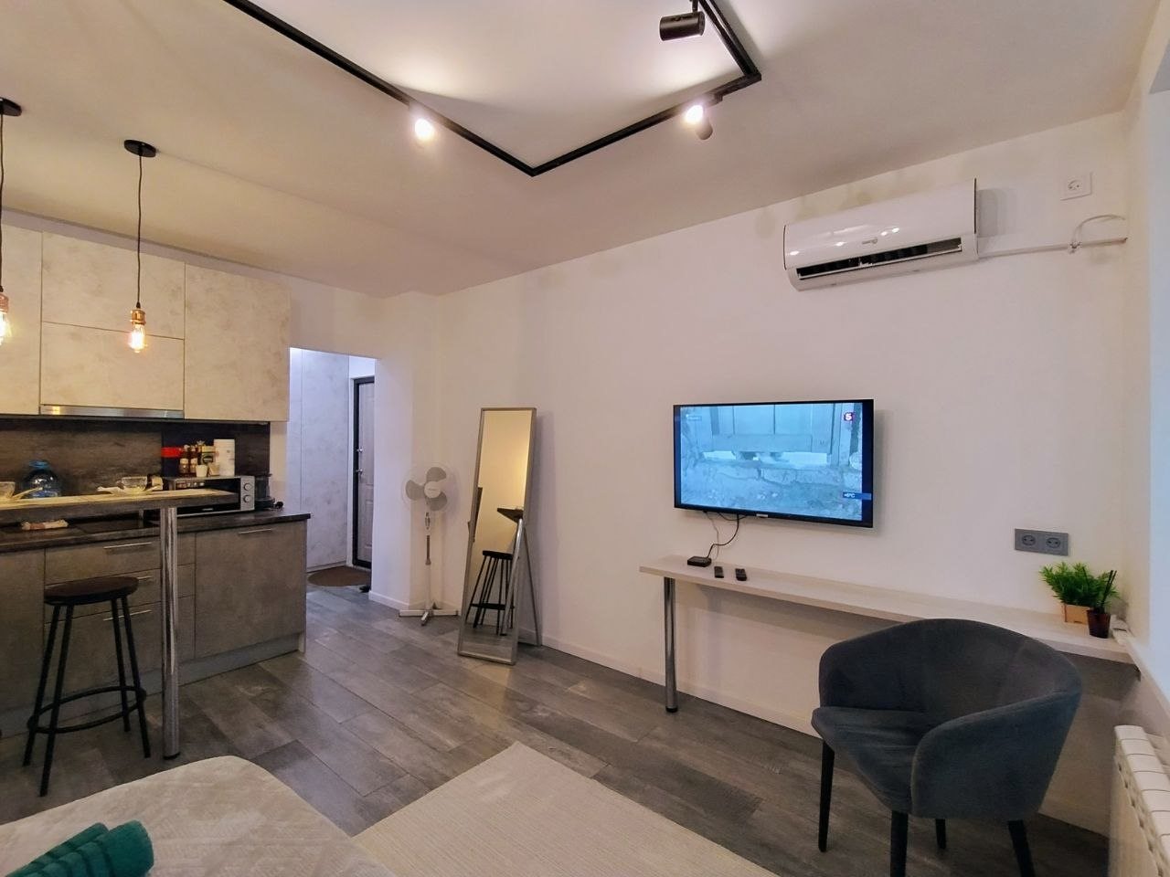 В предлагаемой для размещения квартире-студио имеется всё необходимое для качественного и комфортного проживания: раскладной диван-кровать, кресло, телевизор, кондиционер, шкаф, гладильные принадлежности. Благодаря быстрому интернету можно выходить на связь по видео с родными или проводить онлайн встречи. В ванной комнате есть душевая кабина, стиральная машина, тапочки, фен, средства личной гигиены.