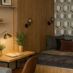 Для полноценного отдыха и проживания предусмотрены: двуспальная кровать, удобный и мягкий диван, ЖК-телевизор, письменный стол, различные источники освещения, ванная комната со стиральной машиной.