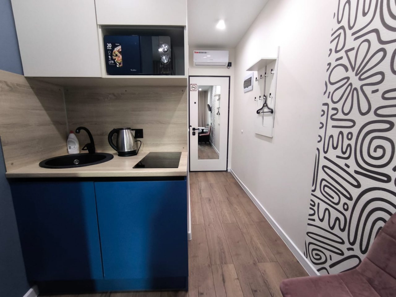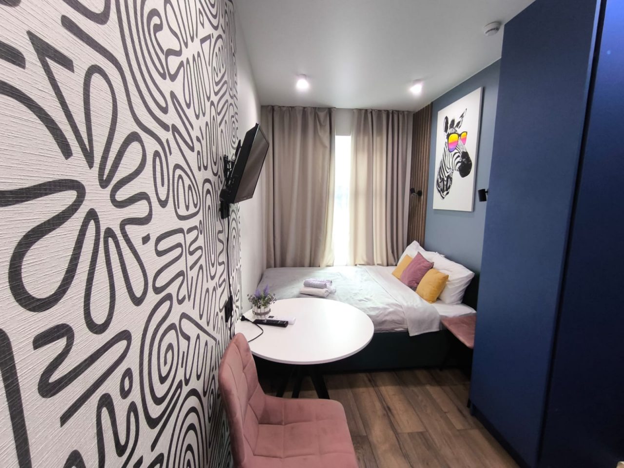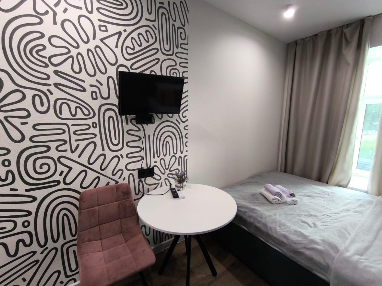 Бронировала на один день. Удобно, что оформление онлайн, всё прошло быстро. Снимали апартаменты под номером 13. Крайне маленькие, но всё необходимое есть.